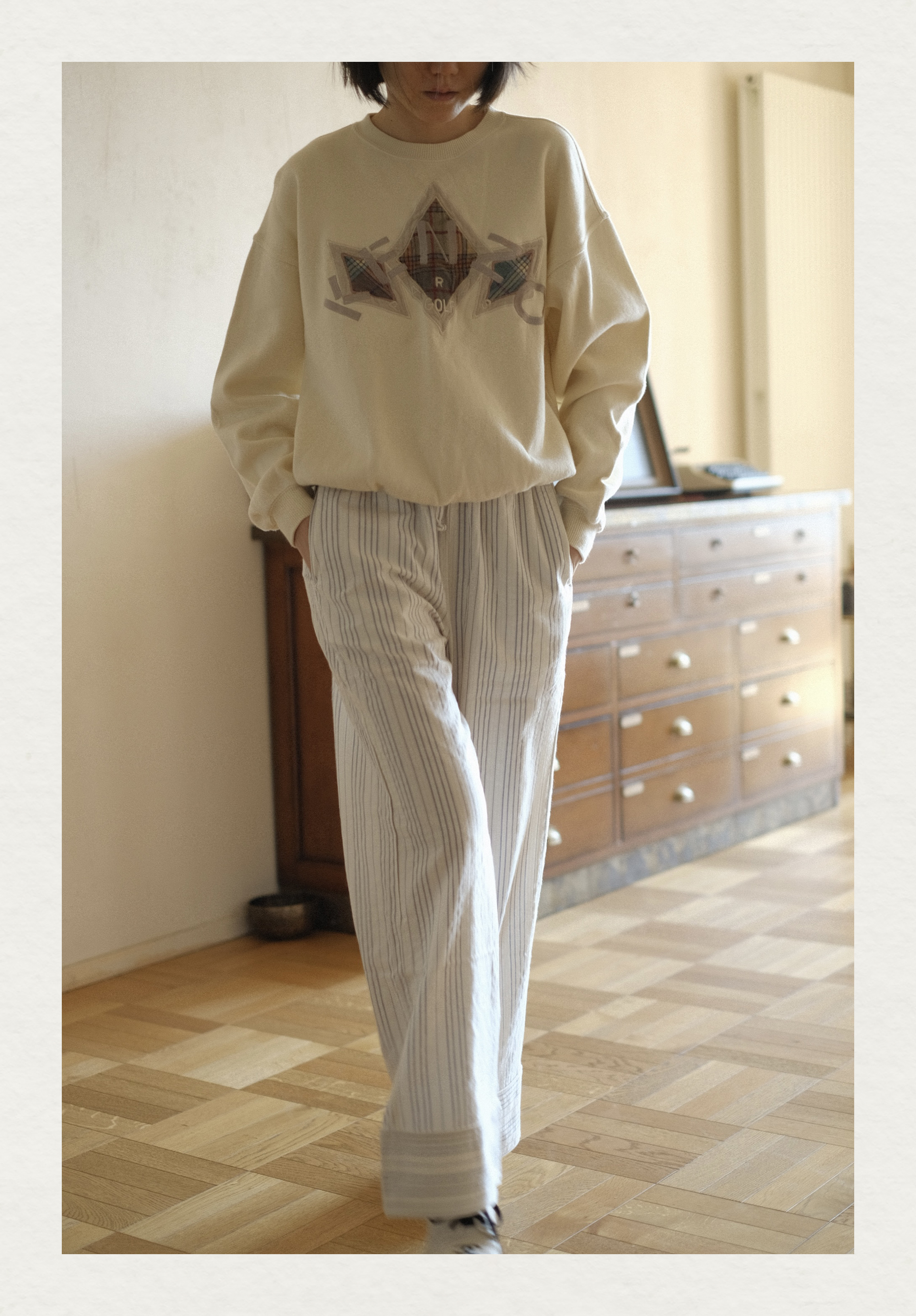 匹马棉桑蚕丝OVERSIZE自然边T恤衫