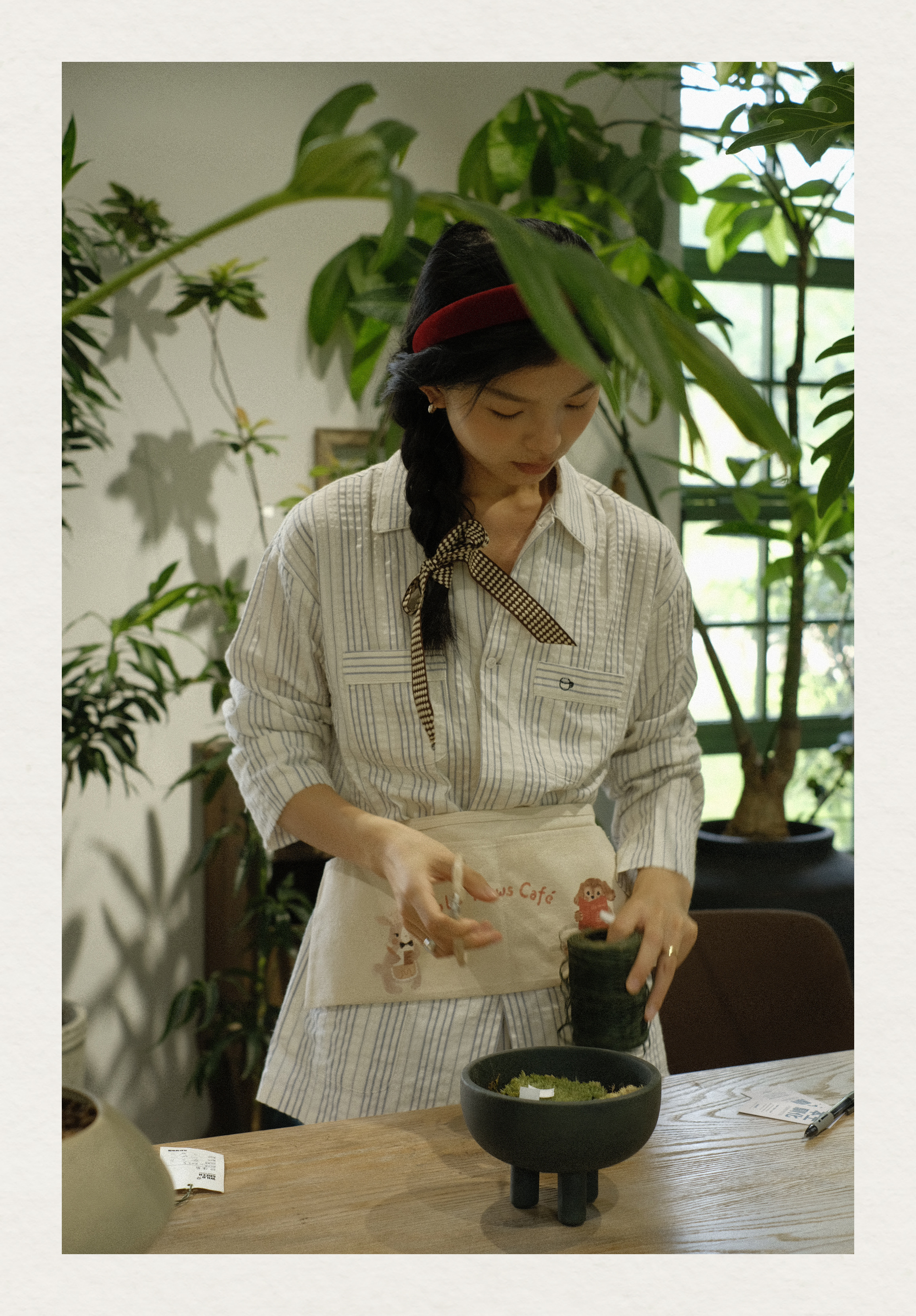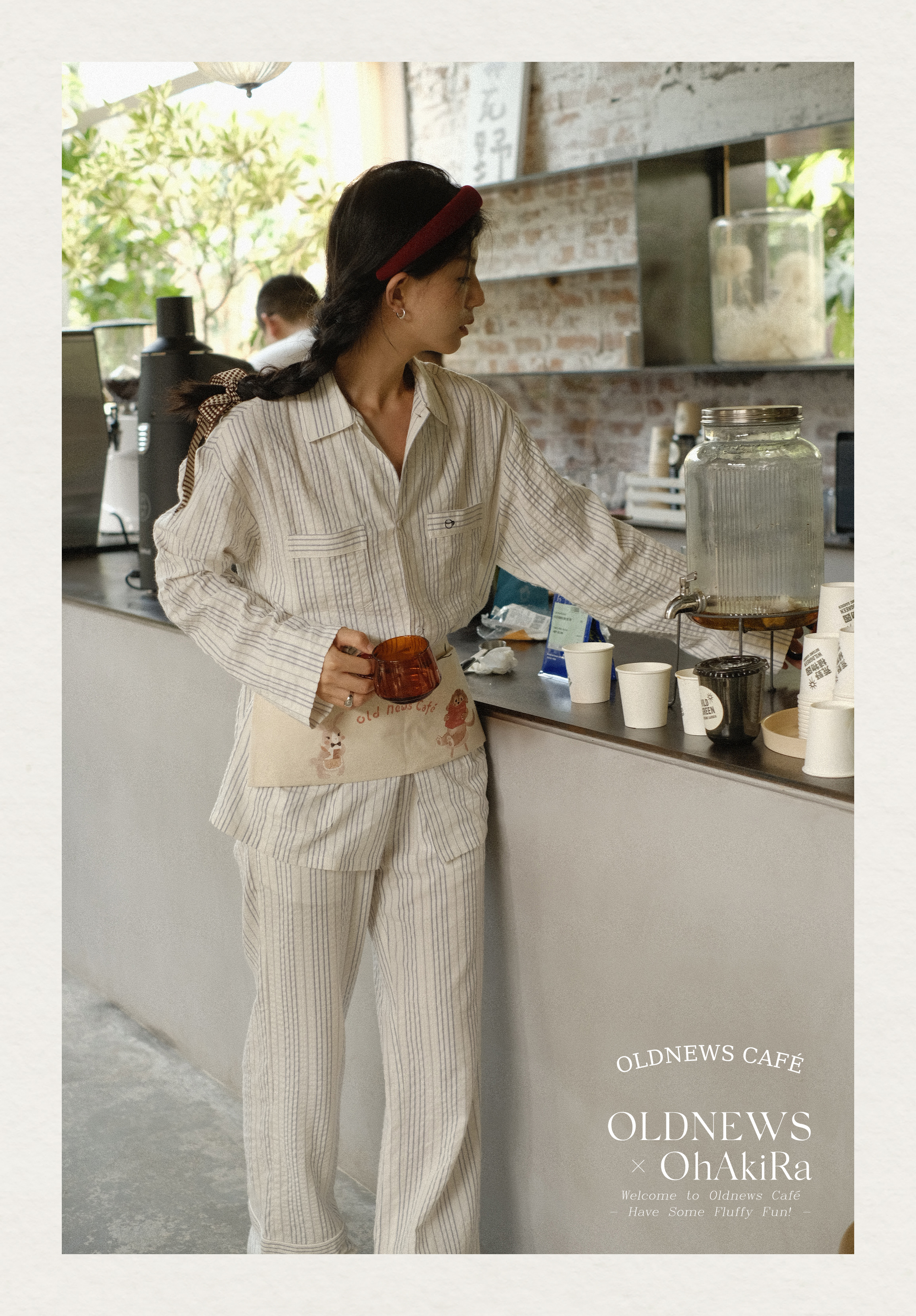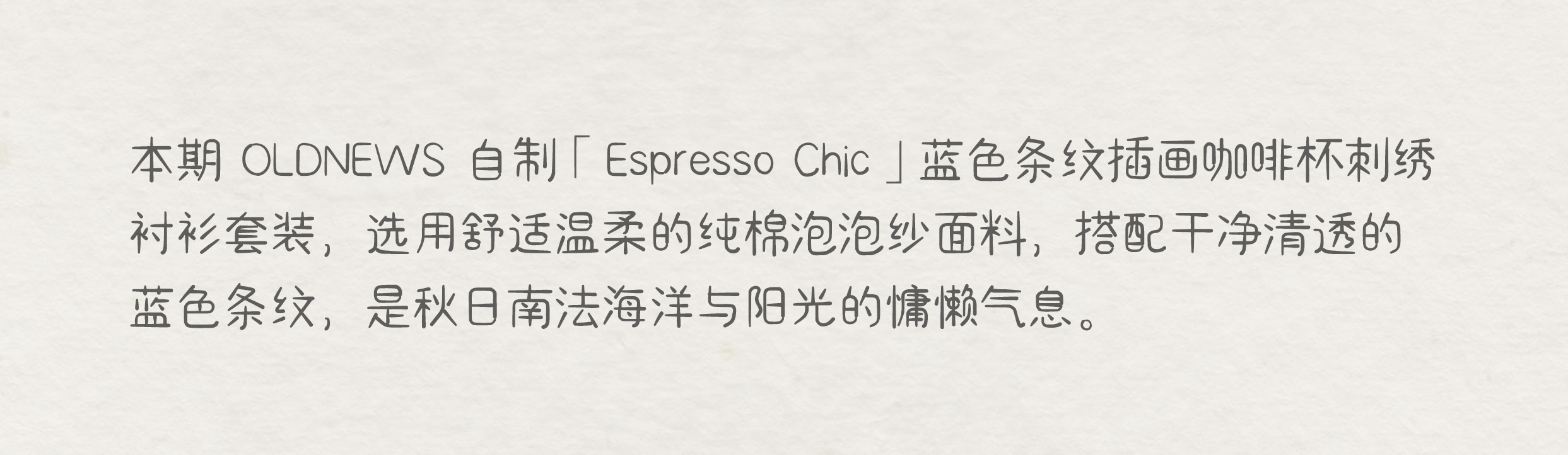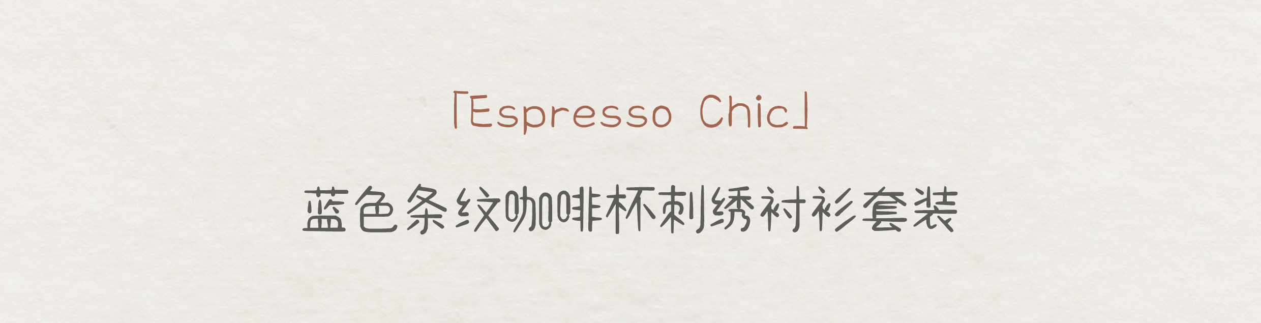 「Espresso Chic」蓝色条纹咖啡杯刺绣衬衫套装