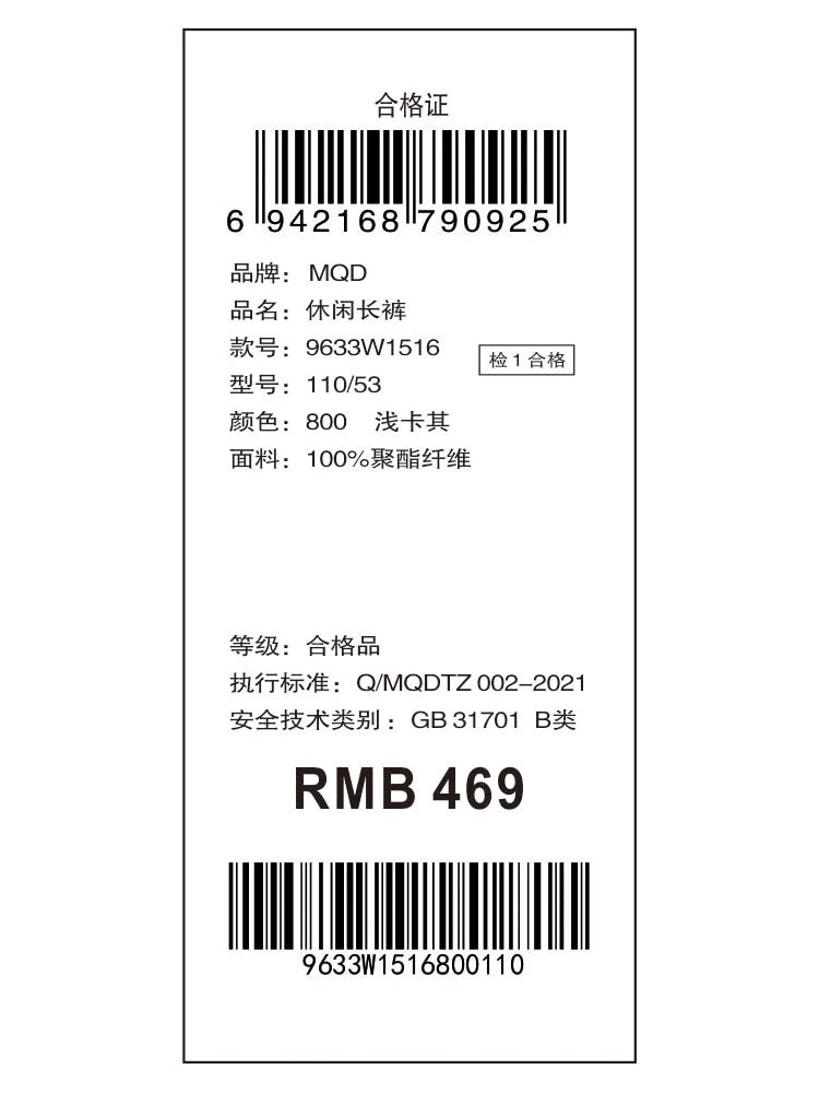 【秒3】【MQD】童装儿童春秋新款亲肤柔软时尚吸湿舒适户外休闲裤潮