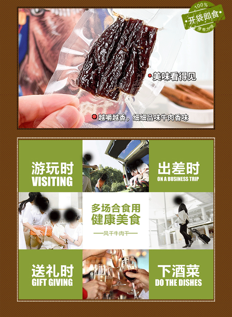 品名:高原风干牦牛肉干规格1:1袋装,原味 规格2:1袋装,辣味 规格3:2袋装,原味 规格4:2袋装,辣味 规格5:2袋装,原味+辣味 规格6:4袋装,原味 规格7:4袋装,辣味 规格8:4袋装,原味+辣味各2袋 注:1袋100g; 包装方式:彩袋+抽真空包装 快递:中通快递 运费模板:新疆,西藏,港澳台不发;海南、内蒙+5元; 辽宁、吉林、黑龙江+3元;北京,上海+2元;其地区包邮。 发货时效:48小时 发货地/产地:四川省眉山市 保质期:180天 销售售卖期:长期 周六周天、节假日除外,早上十点之前的订单是48小时发货 ,到货时间约为2-5天,请您耐心 |