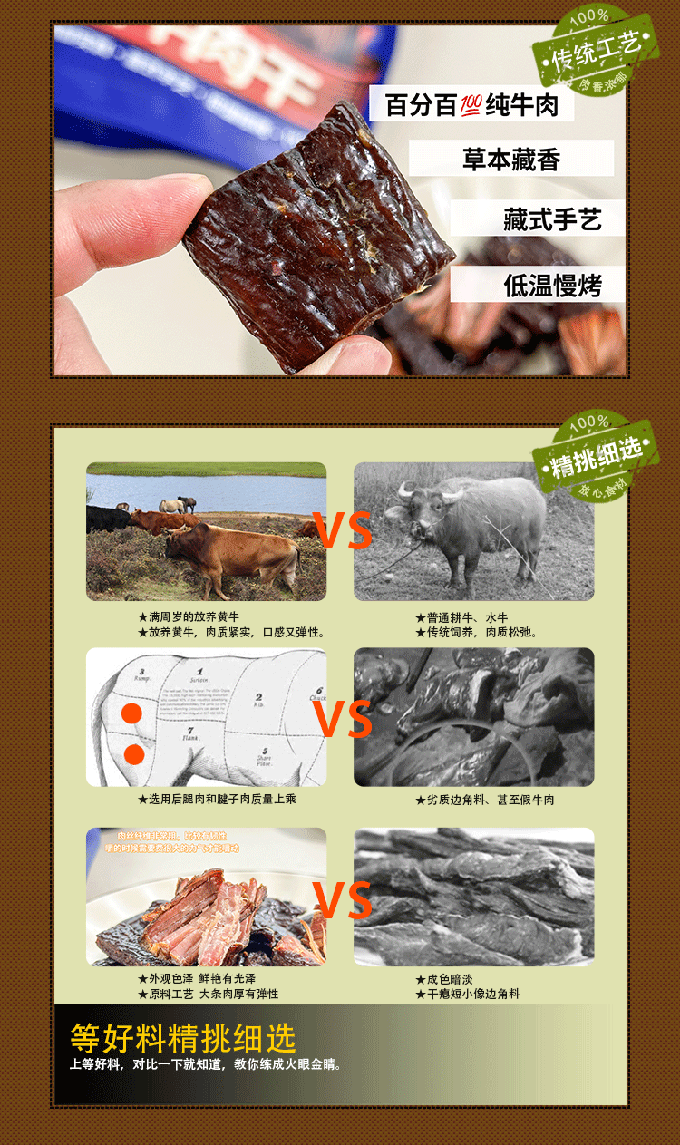 高原风干牦牛肉干#鲜香劲道肉制醇香,高原放养牦牛肉,配料表干净,原肉整切无糖,草本藏香