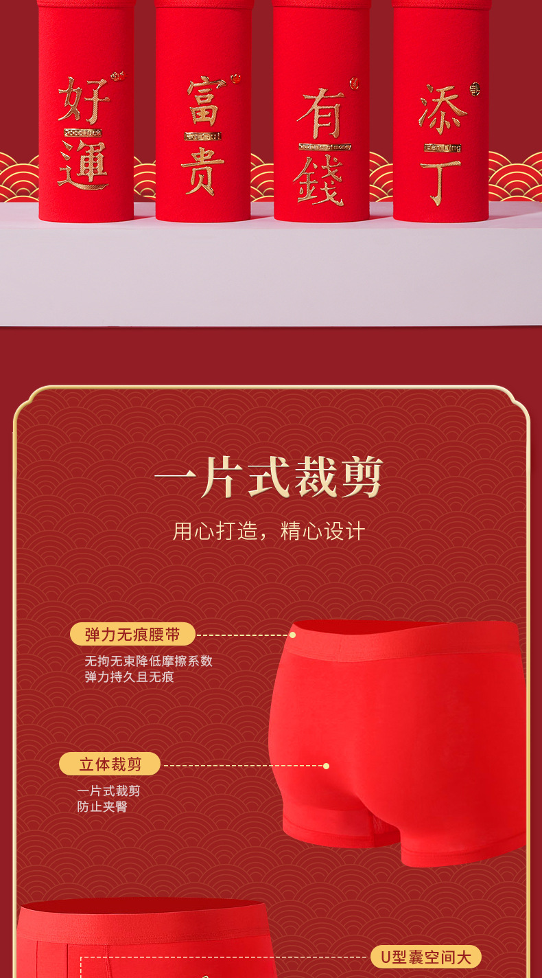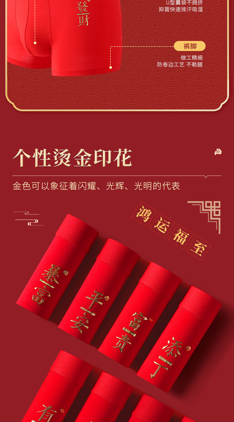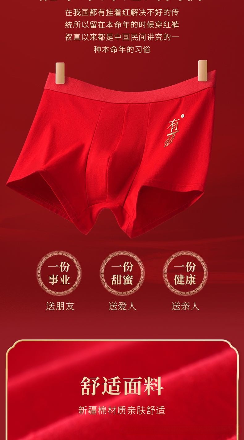 新年元旦【纯棉面料抑菌内档❗️鸿运当头招财纳福】红色内裤过年喜庆本命年男生内裤舒适透气柔软纯棉大码红内裤。ja