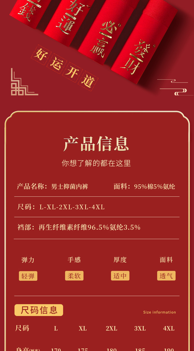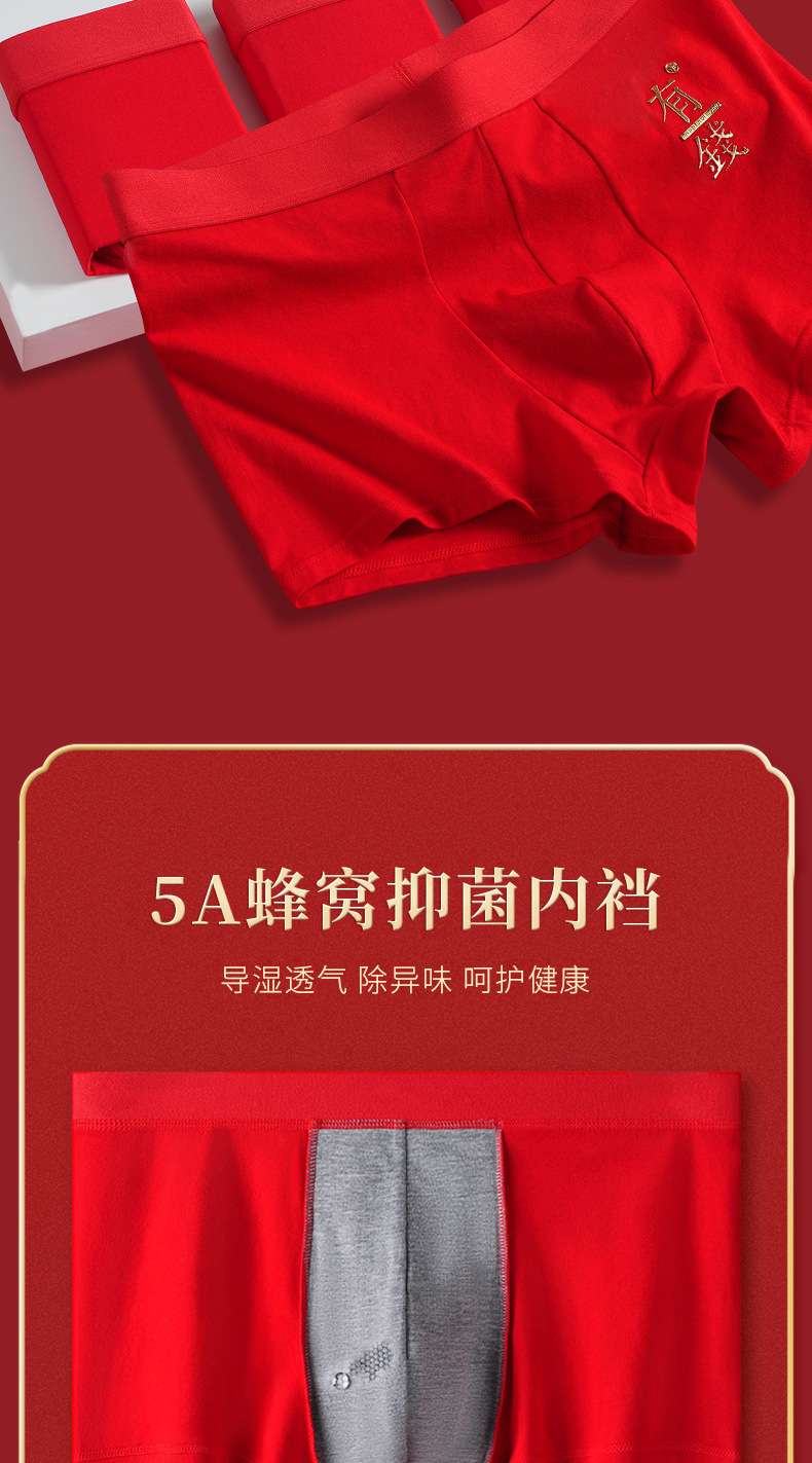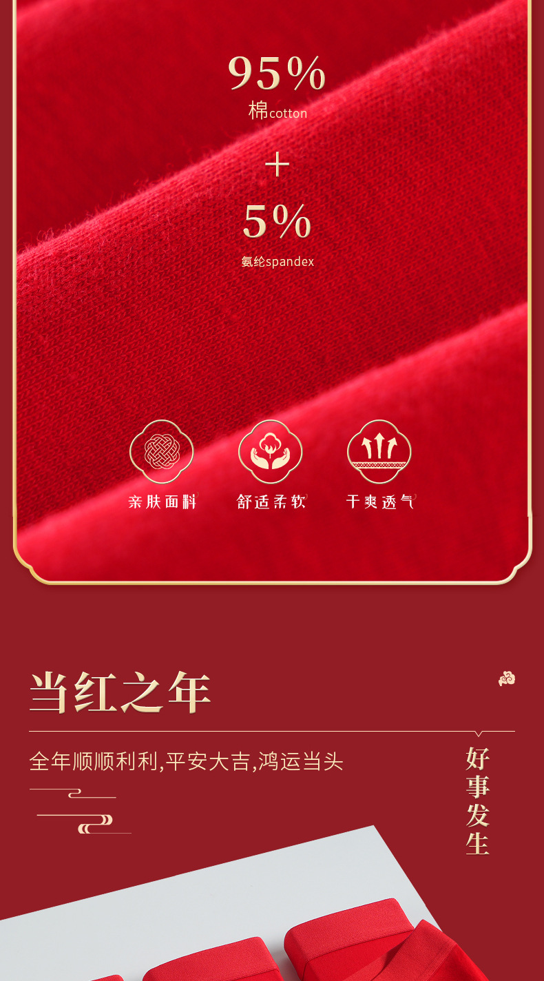 新年元旦【纯棉面料抑菌内档❗️鸿运当头招财纳福】红色内裤过年喜庆本命年男生内裤舒适透气柔软纯棉大码红内裤。ja