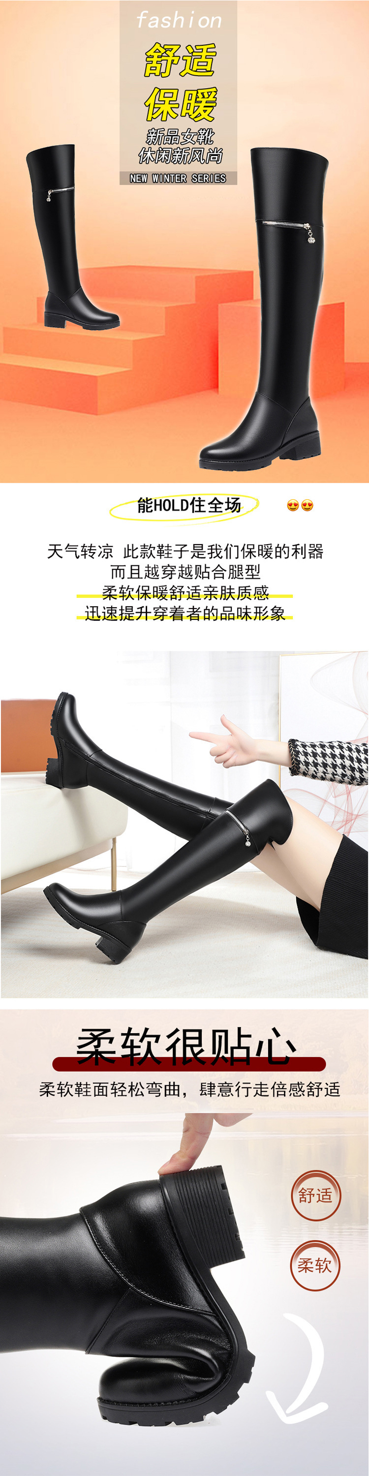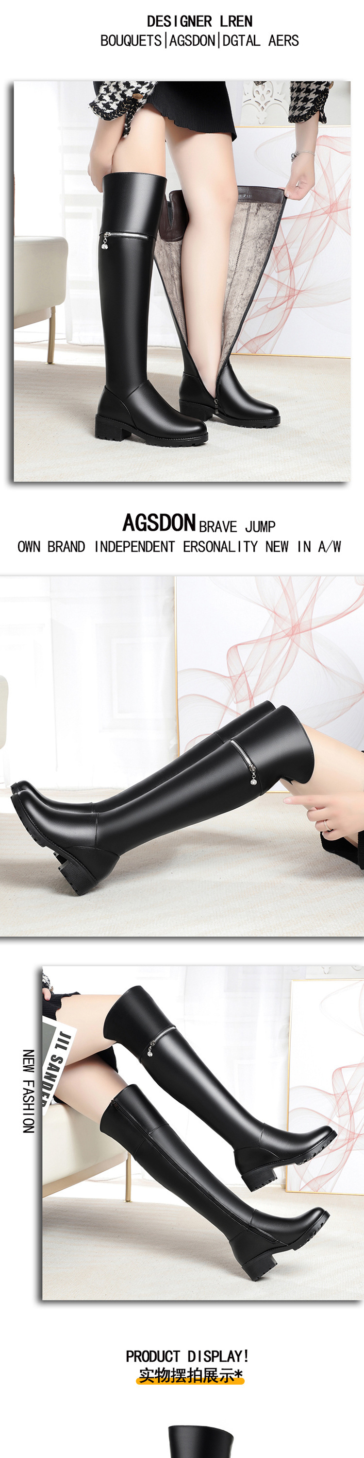SX690秋冬新款过膝靴子高跟粗跟防水台马丁长靴