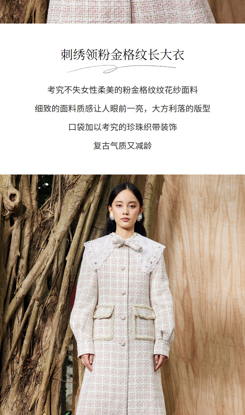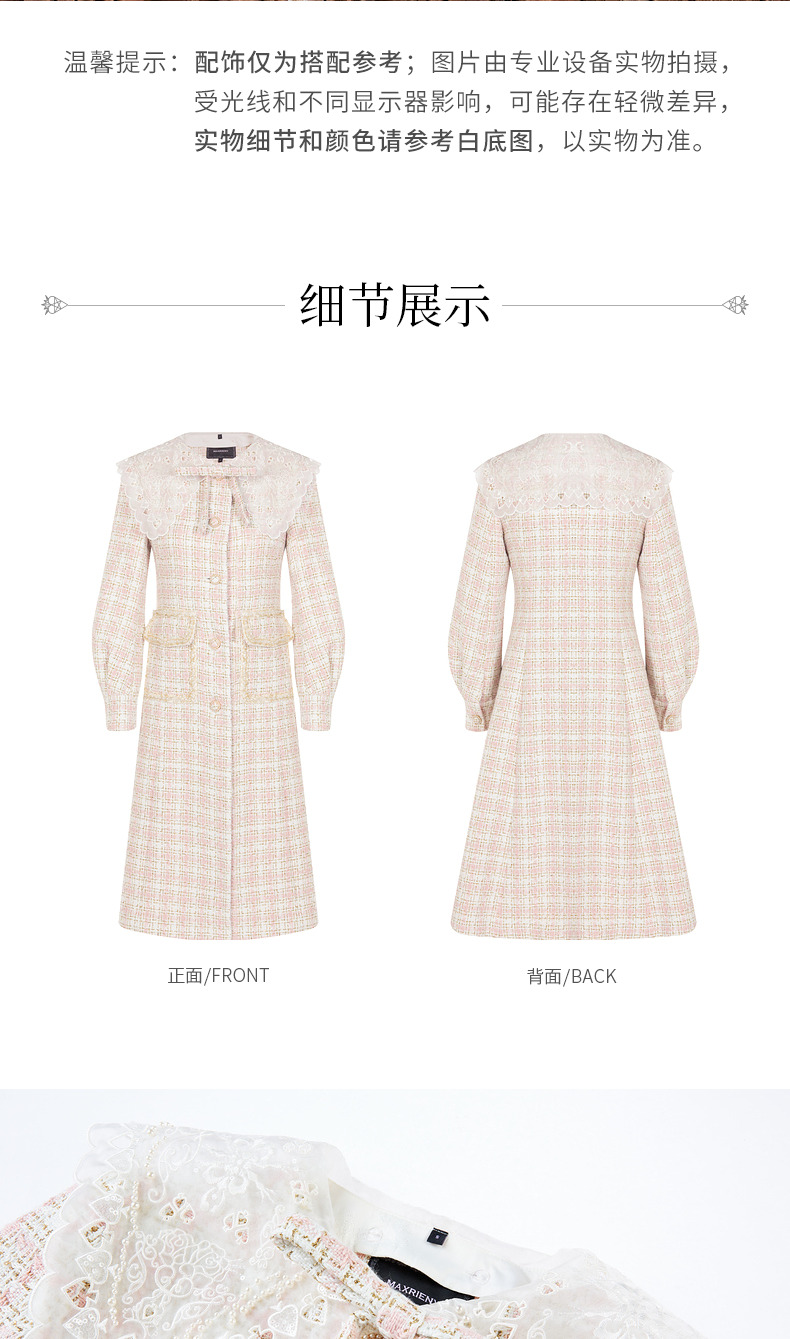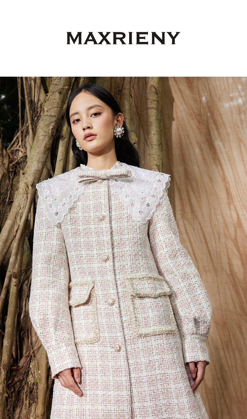 MAXRIENY廓形复古格纹大衣长款冬季新款风衣女(货号:MC87CT778)