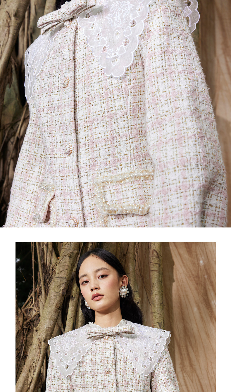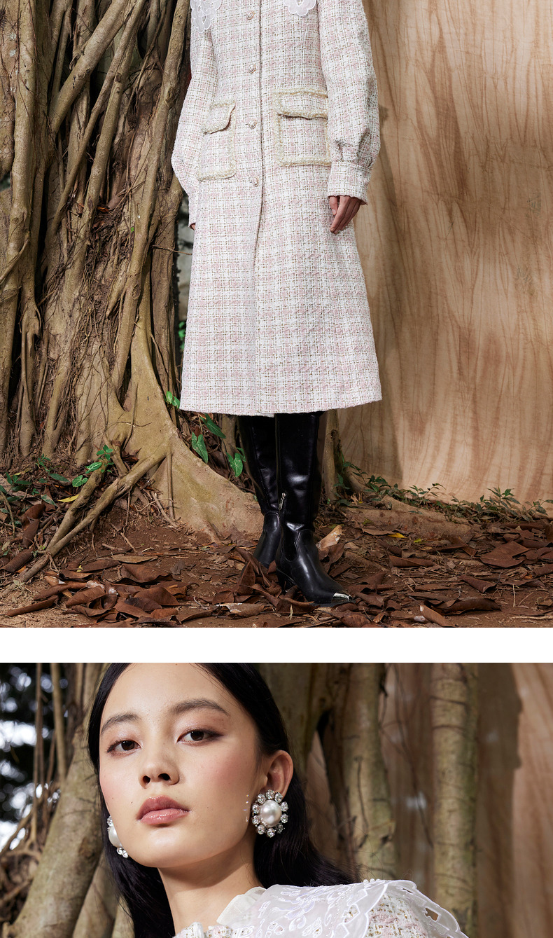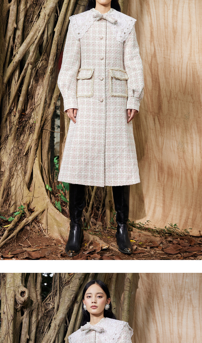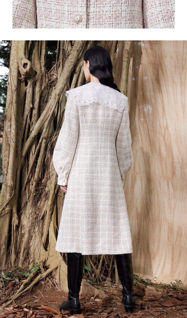 MAXRIENY廓形复古格纹大衣长款冬季新款风衣女(货号:MC87CT778)