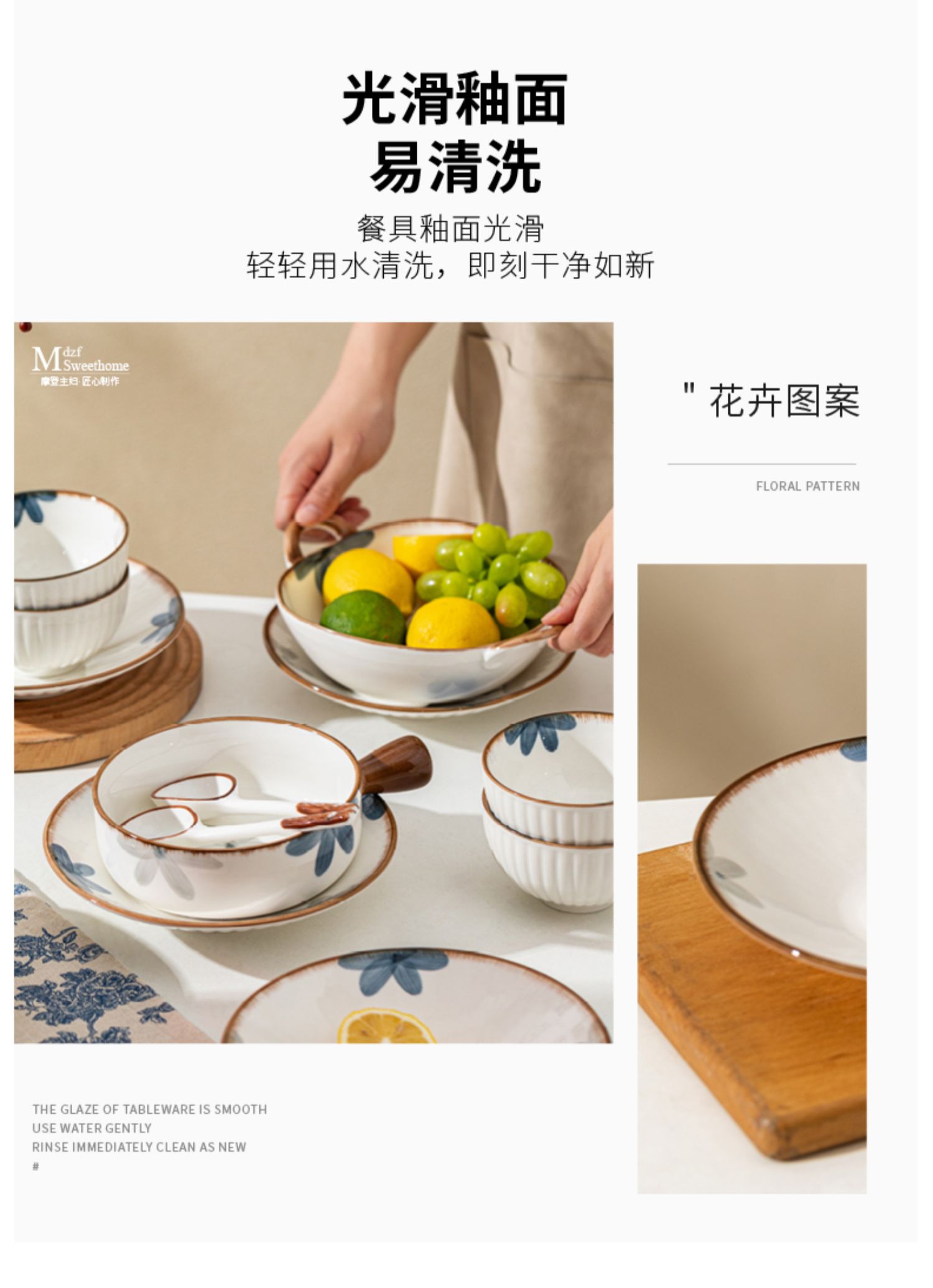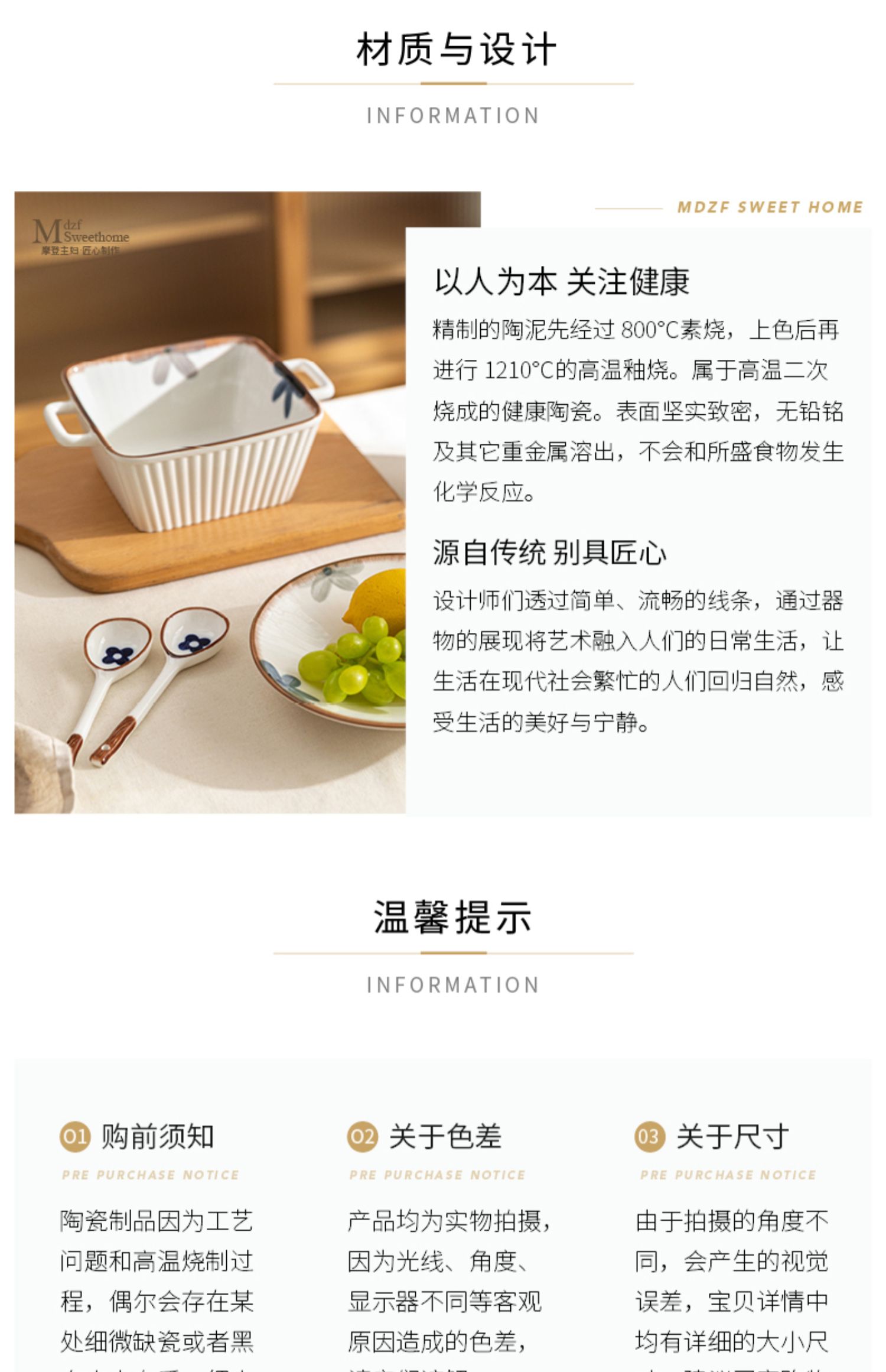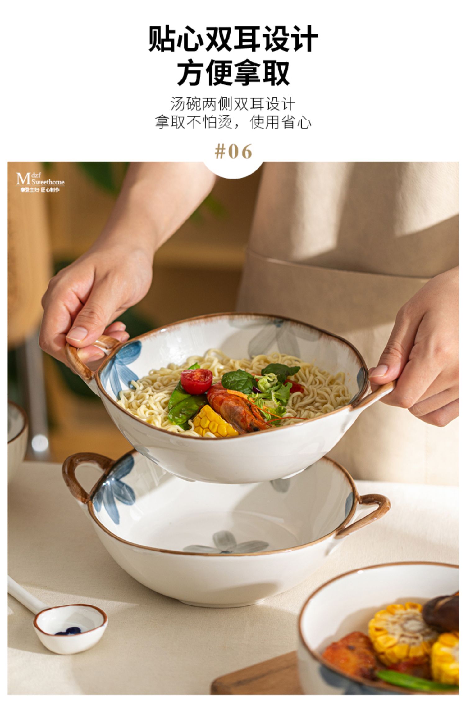 摩登主妇墨蓝陶瓷盘子碗家用2022新款日式双耳汤碗米饭碗餐具套装