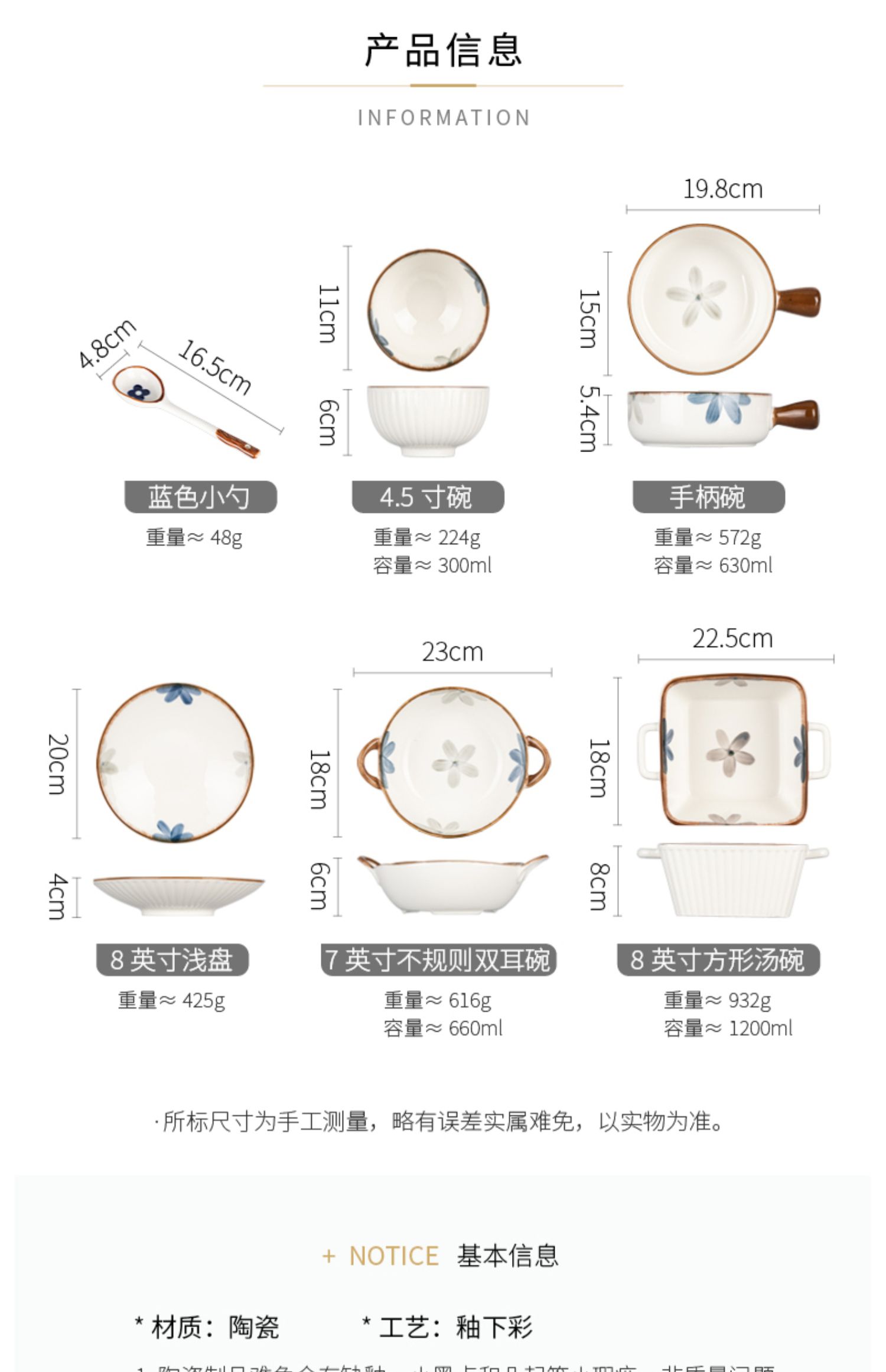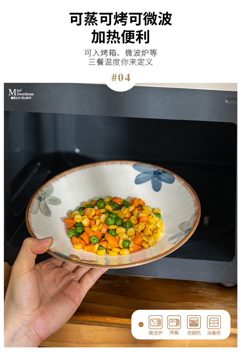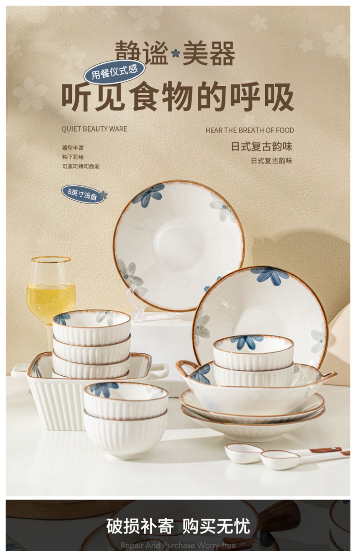 摩登主妇墨蓝陶瓷盘子碗家用2022新款日式双耳汤碗米饭碗餐具套装