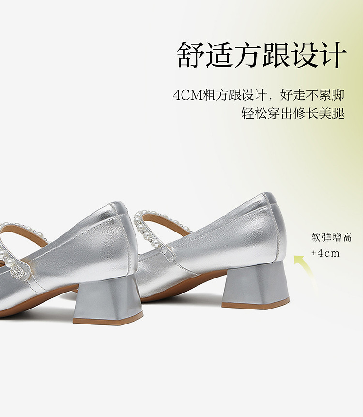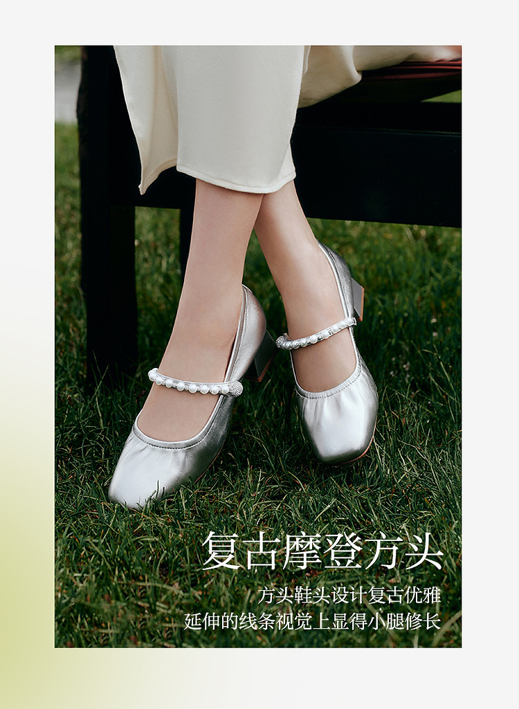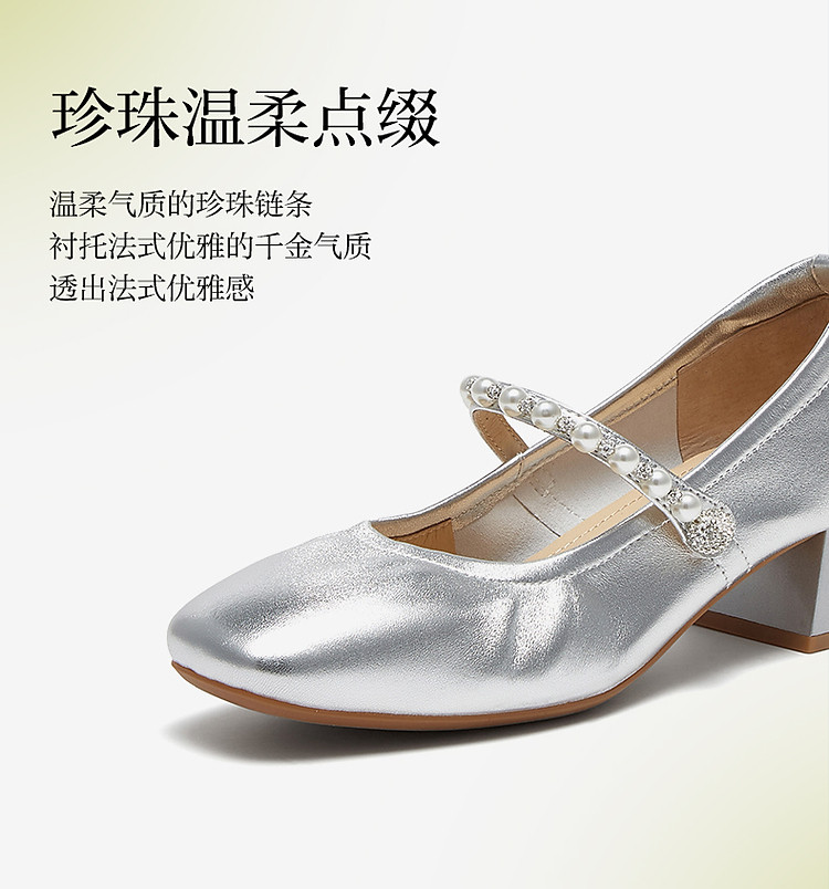 2024秋季商场同款简约法式玛丽珍谢粗跟女单鞋