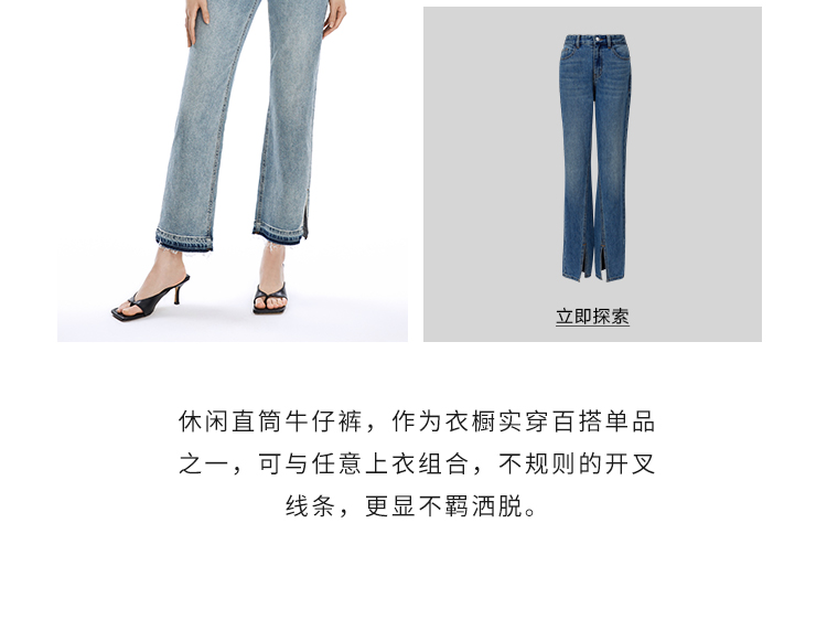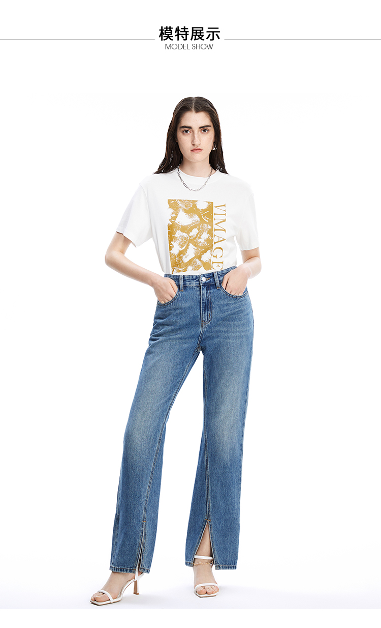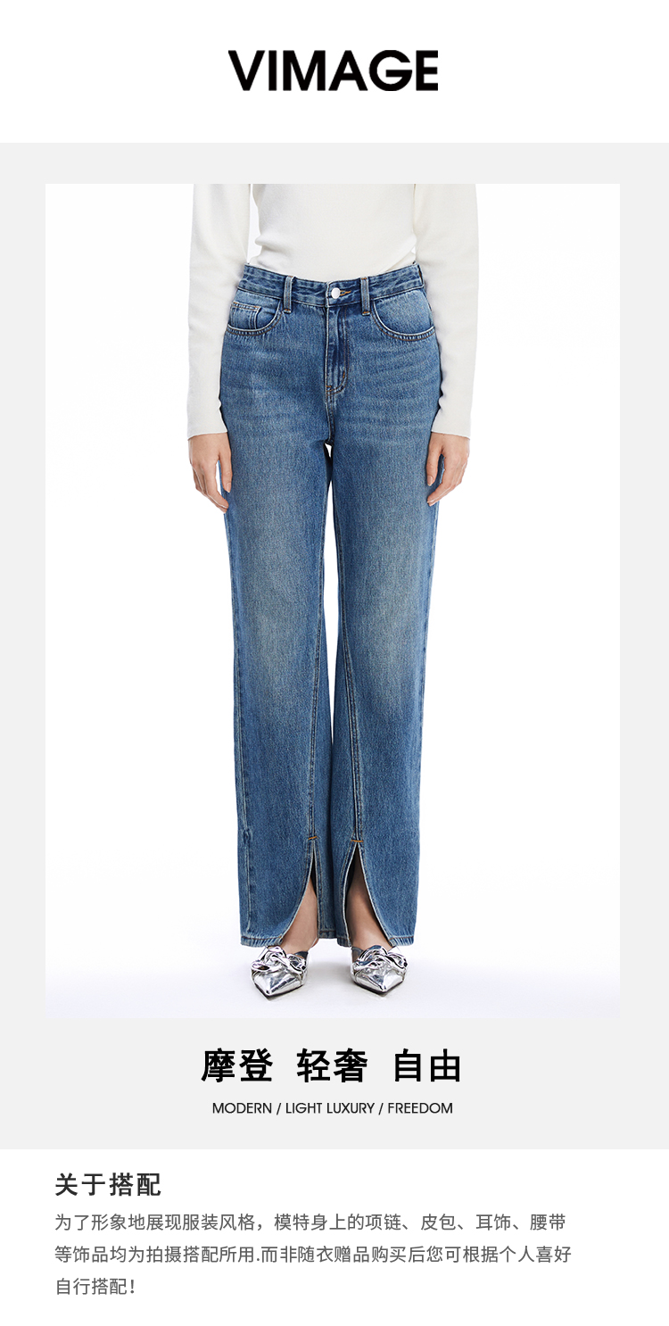 VIMAGE纬漫纪秋季新款时尚通勤休闲显瘦高腰开叉百搭牛仔裤V1605230裤子
