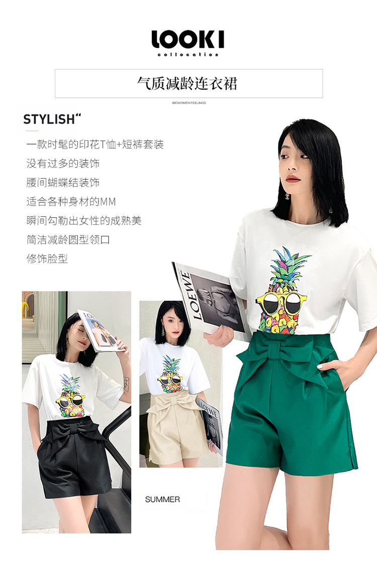 新款港风复古短袖名媛套装小香风短裤两件套HR-WHA049-29