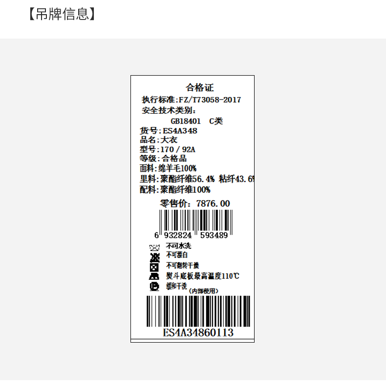 【100%绵羊毛】乔万尼冬季高级感100绵羊毛商务休闲设计感保暖抗寒大衣ES4A348