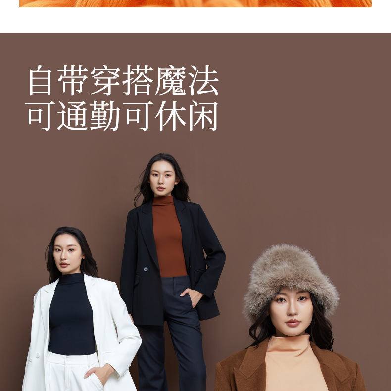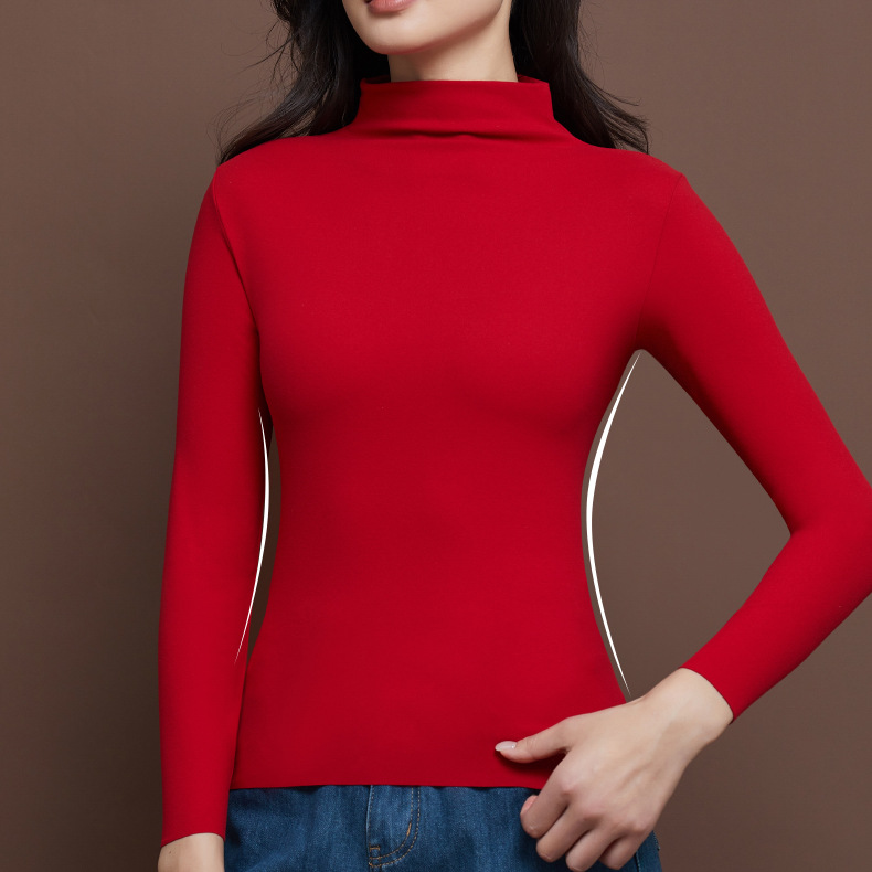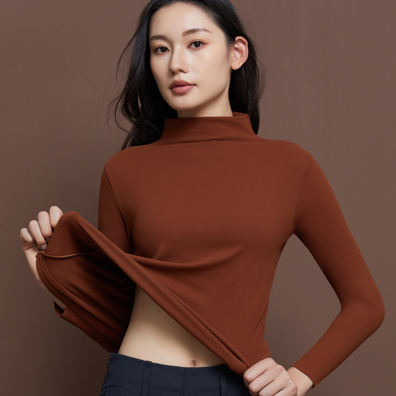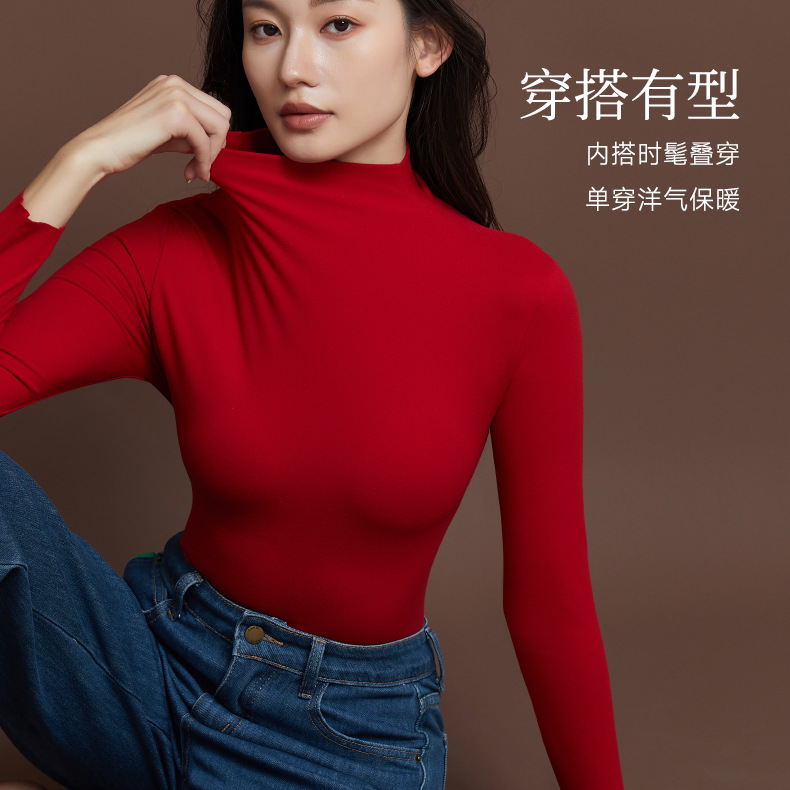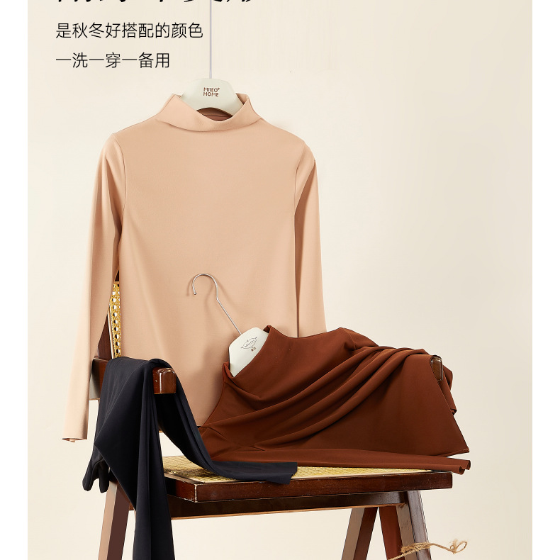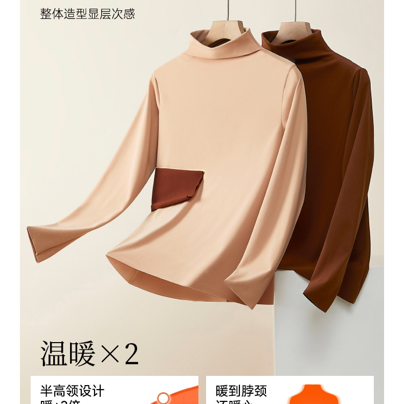 【秒杀】【保暖锁温】磨毛半高领打底衫舒适保暖上衣女长袖秋冬内搭立领8623 100%