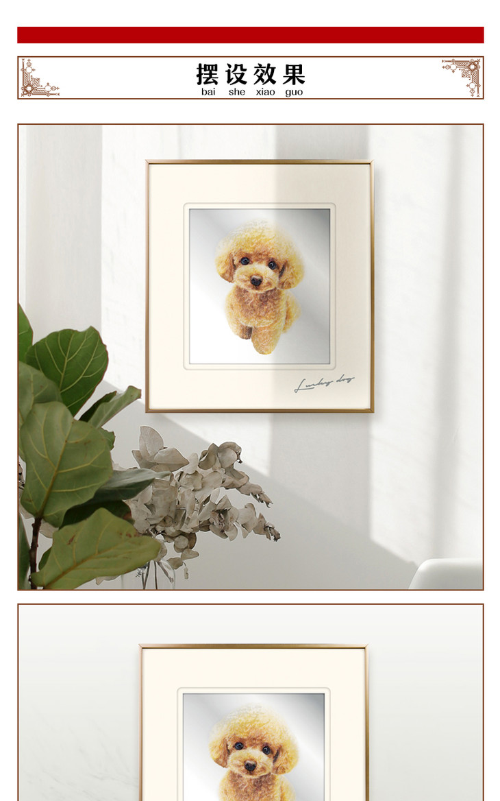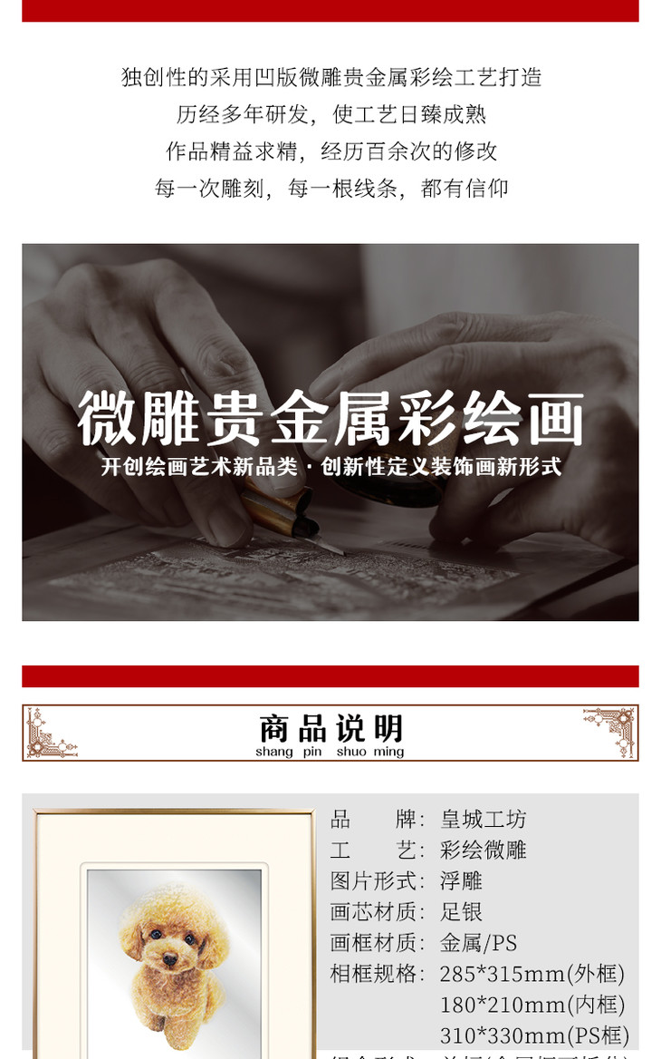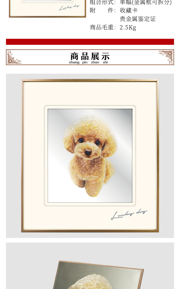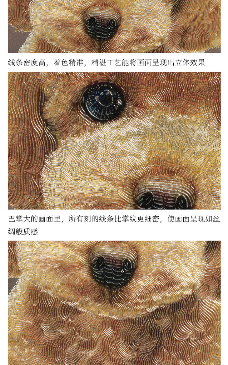 皇城工坊萌宠泰迪宠爱一生足银微雕画摆件送礼装饰画挂画足银