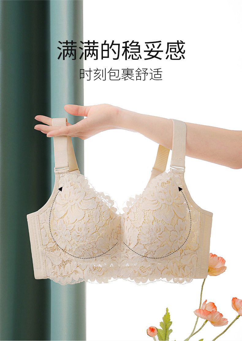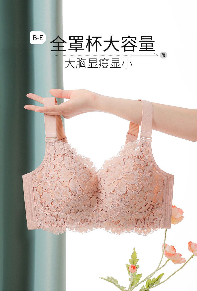 QC-W6169* 新品大胸显小文胸薄款内衣无钢圈聚拢超薄性感蕾丝收副乳(单件)