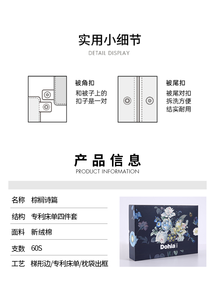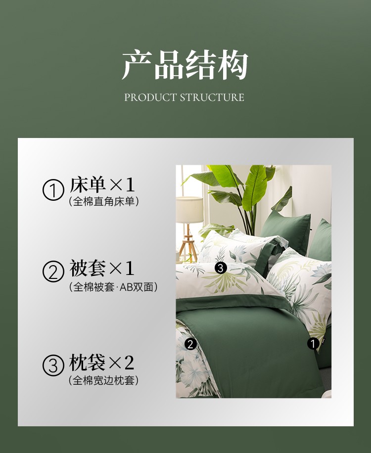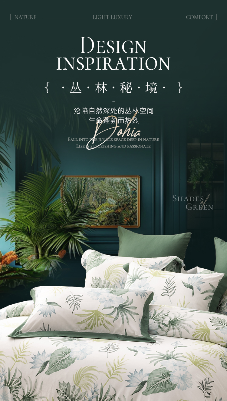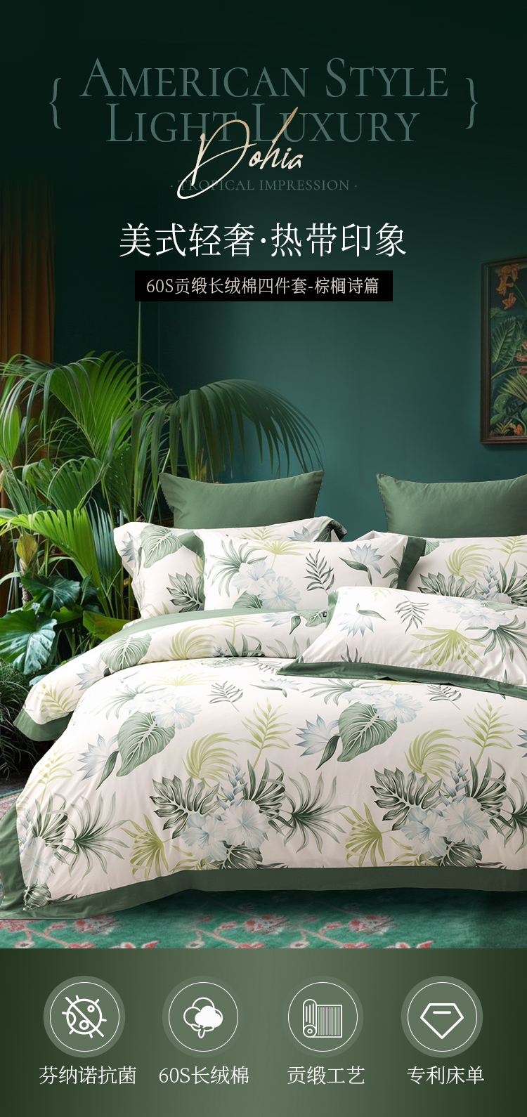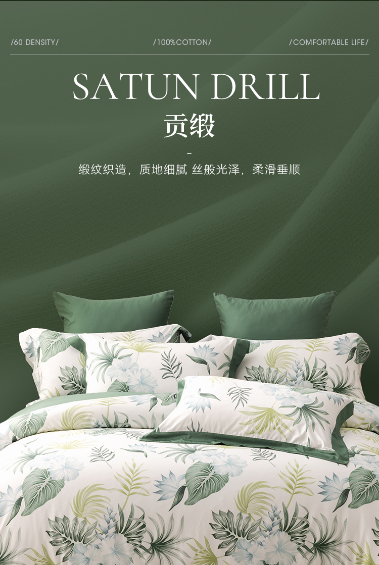 多喜爱 60S贡缎长绒棉四件套-棕榈诗篇 【礼盒包装】美式轻奢 芬纳诺抗菌 60S长绒棉 贡缎工艺 专利床单 双边设计