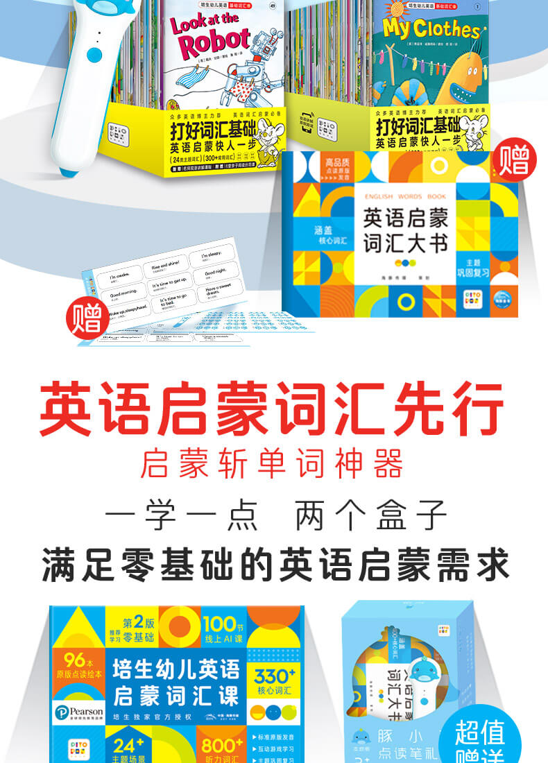 培生幼儿英语启蒙词汇礼盒·第二版【100节Ai课+点读笔+96册绘本】