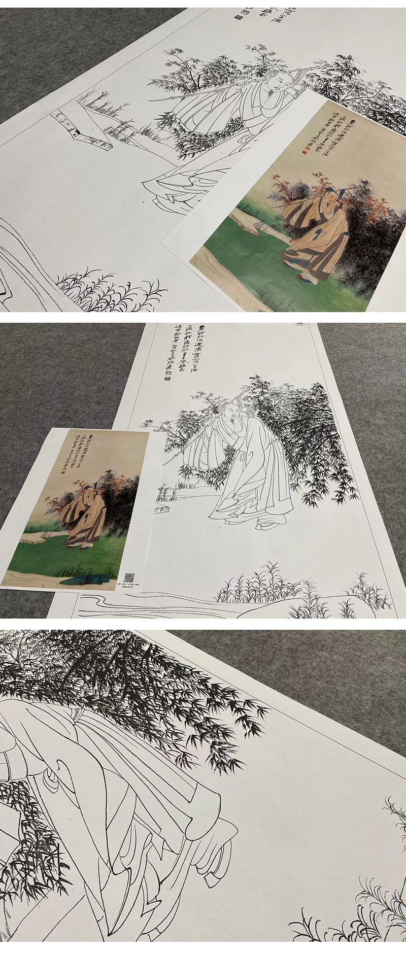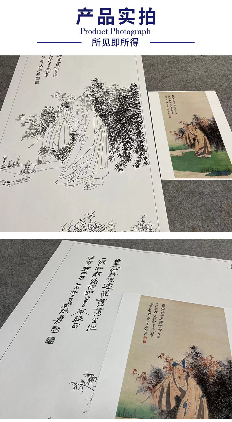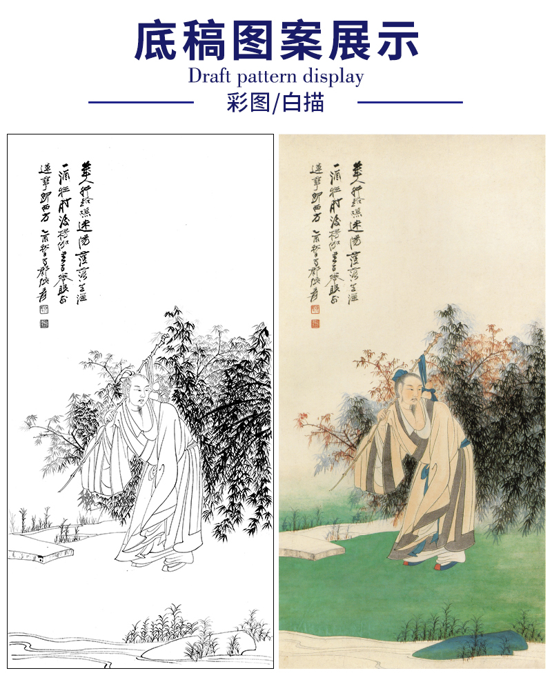 张大千竖幅工笔传统人物白描底稿-《杖经图》-多种白描尺寸可选-QD45