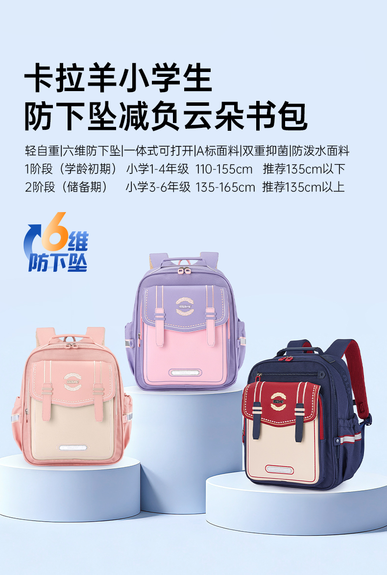 【云朵书包Classic经典版】卡拉羊19.2/22.3L小学生1-6年级6维减负云朵书包璀璨 CX2298+CX2622