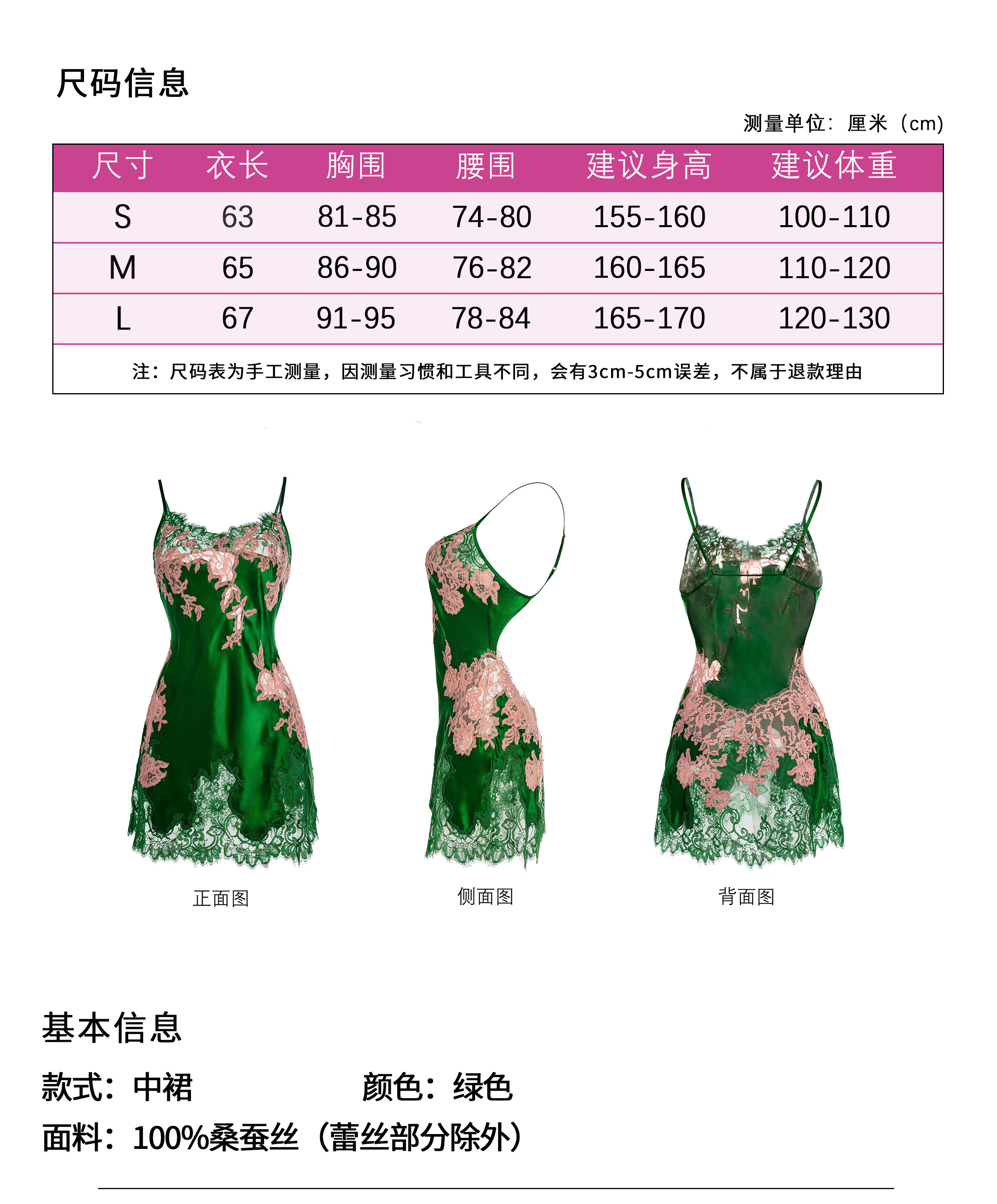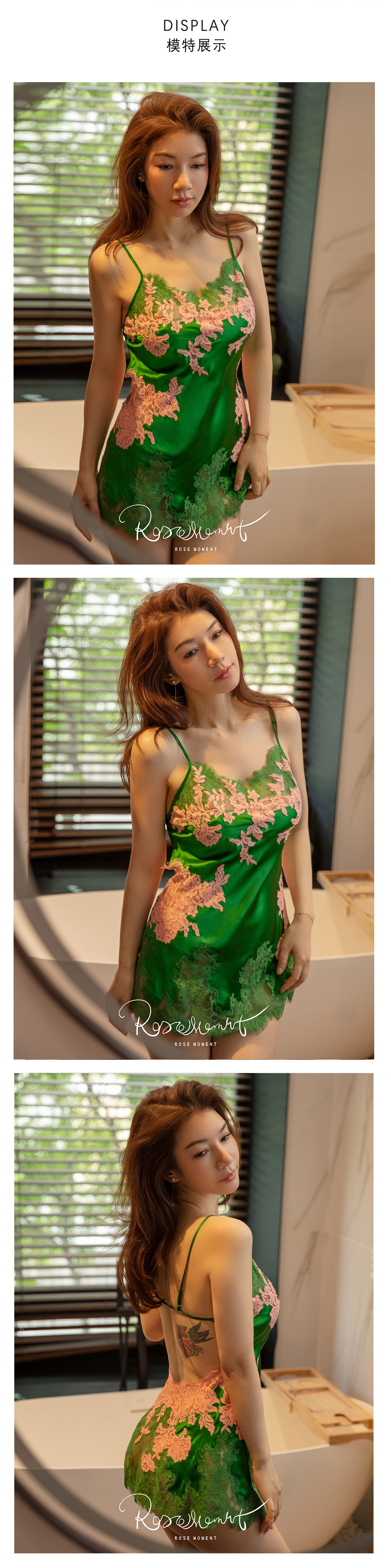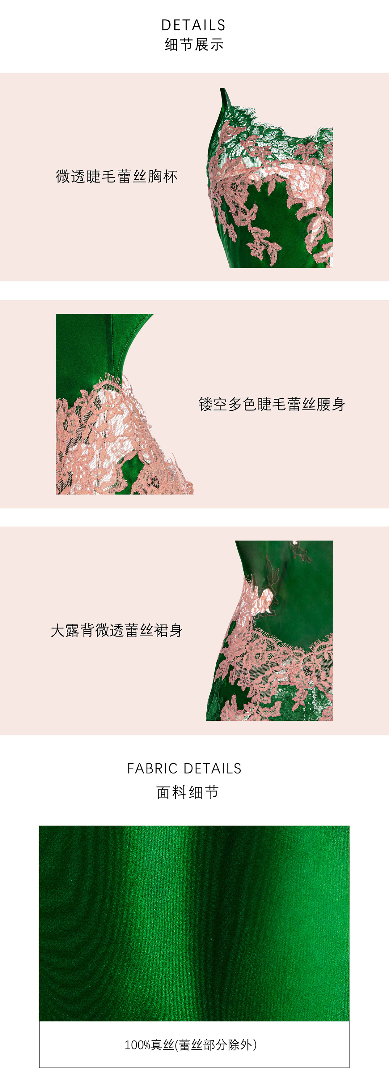 彩色蕾丝露背中款真丝吊裙睡袍 A22102