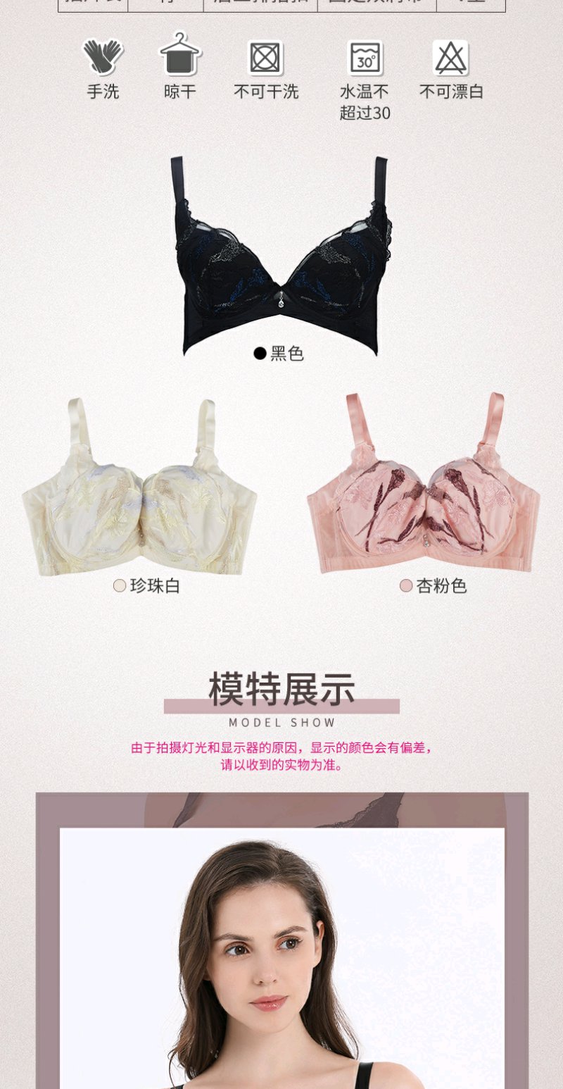 贝佳人新品透气薄棉杯大胸mm包容上托罩杯大码内衣显胸小BW92704