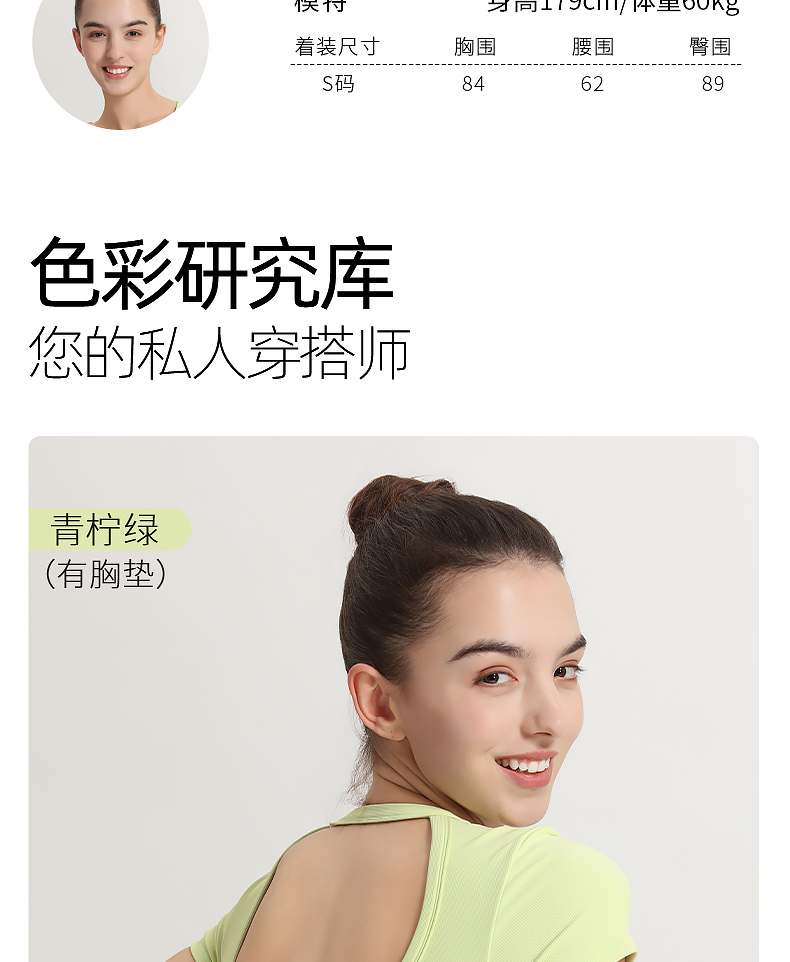 梵美人 F1255 瑜伽短袖 云糯柔感 可拆卸胸垫