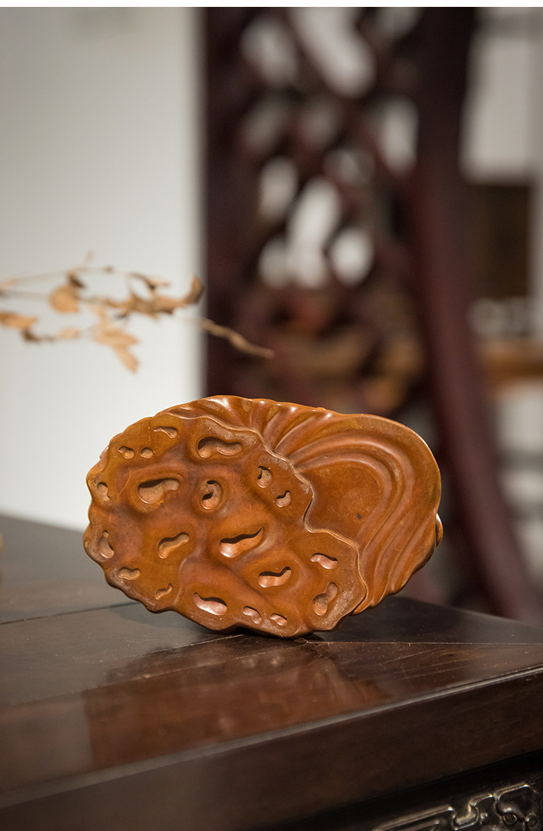 清 青金石嵌绿松石莲花盖盒(红木座)