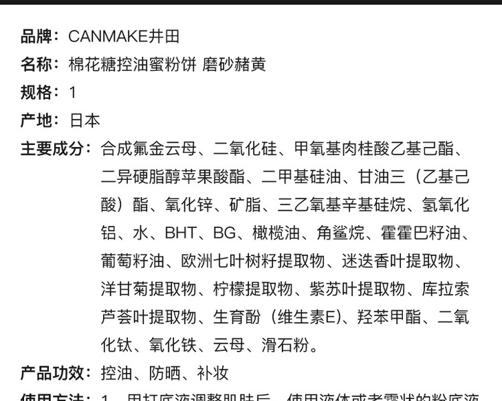 日本 CANMAKE 井田棉花糖控油蜜粉饼MO 明亮色哑光10g