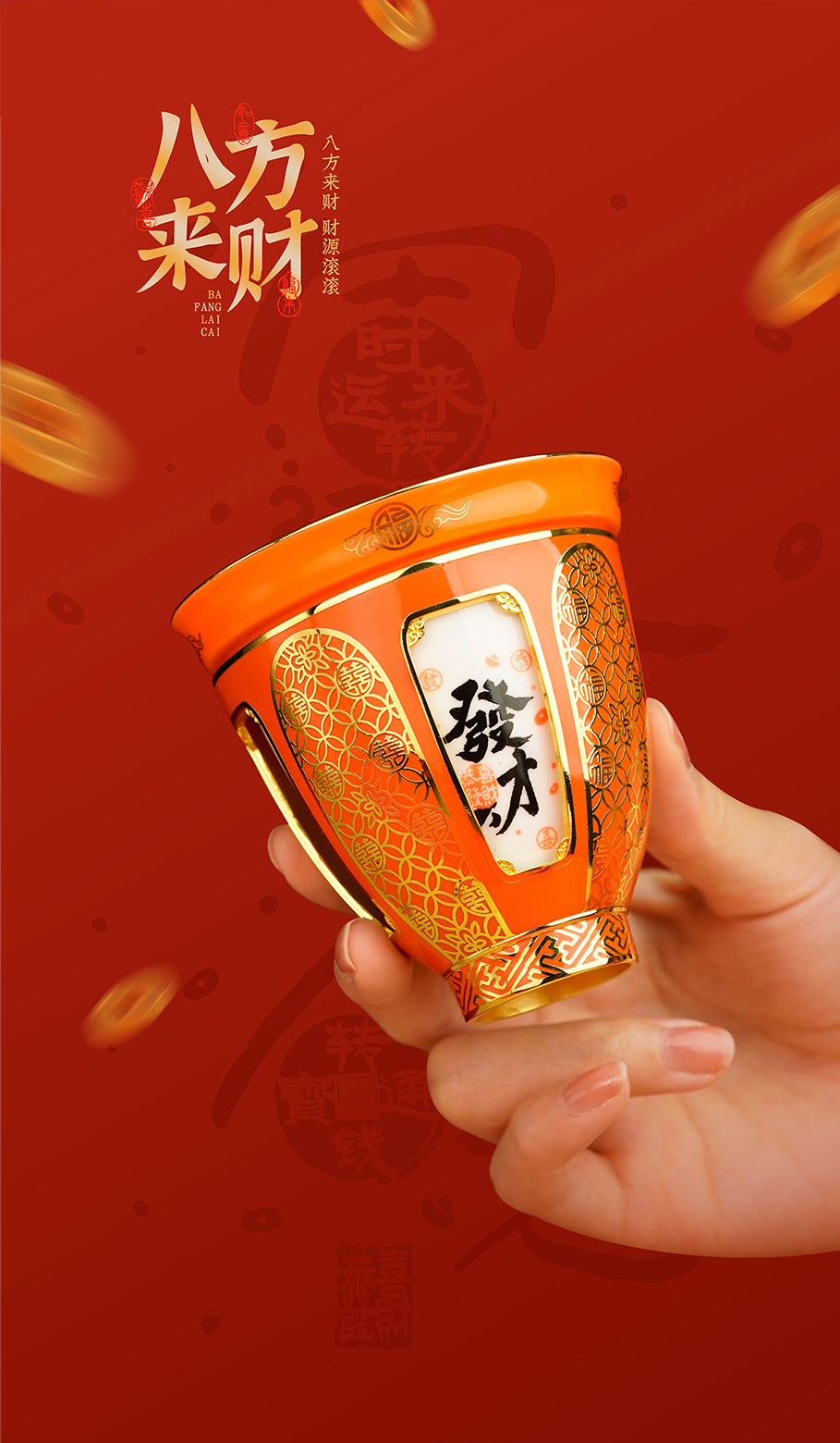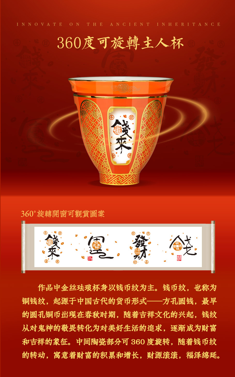 【彼达思】景泰蓝同心杯 八方来财转心杯