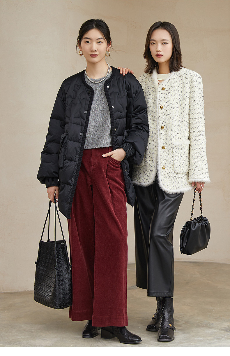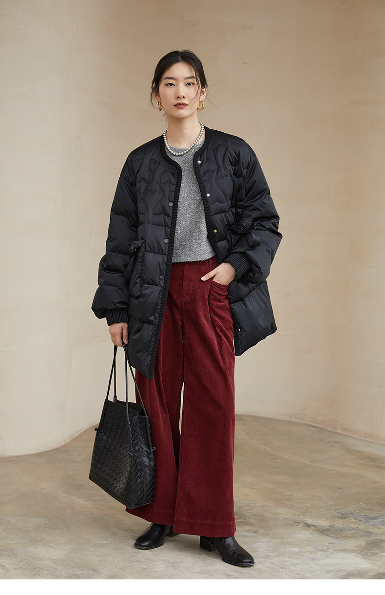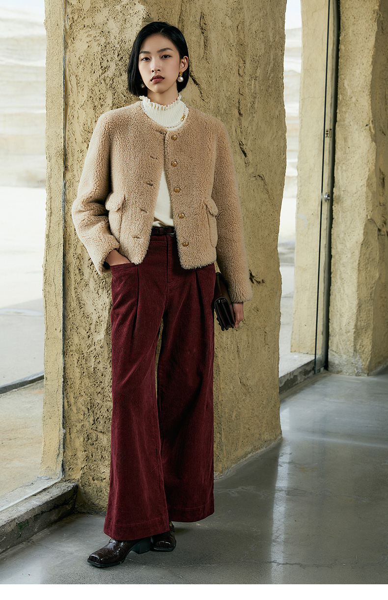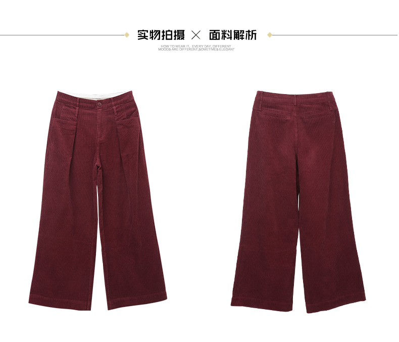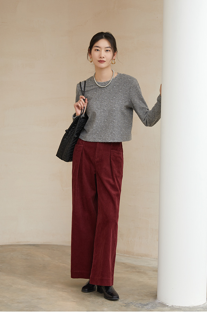 酒红色灯芯绒阔腿裤,复古压褶设计 + 高腰显瘦 + 软糯质感,承包你冬日通勤与出街的慵懒气质与穿搭层次感