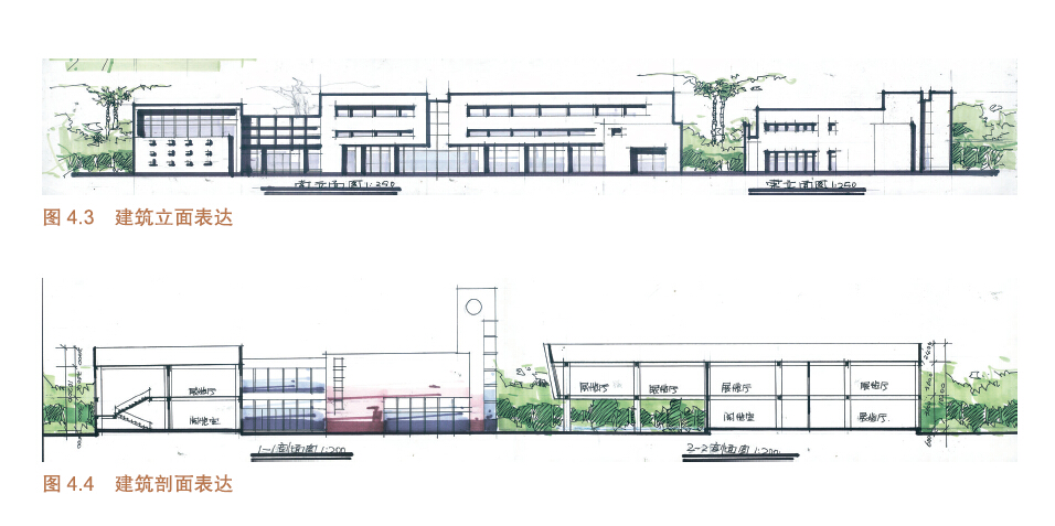 3.针对建筑快速设计的表现技法,从基础知识、绘图工具、表达风格、分类训练、绘图技巧五方面内容进行了归纳;