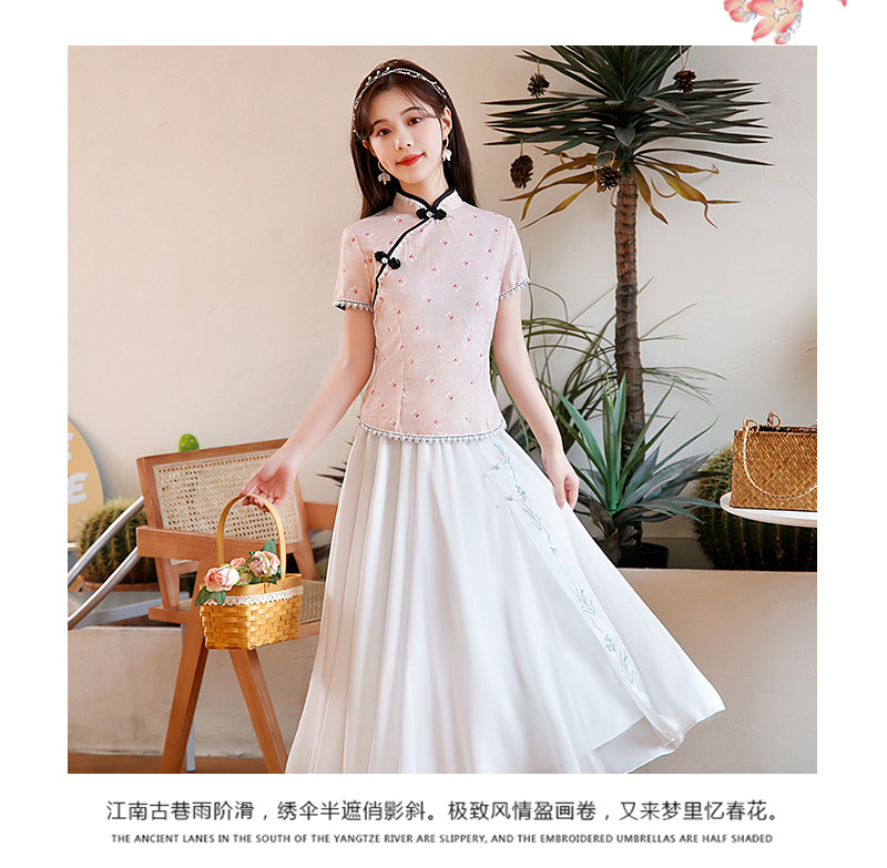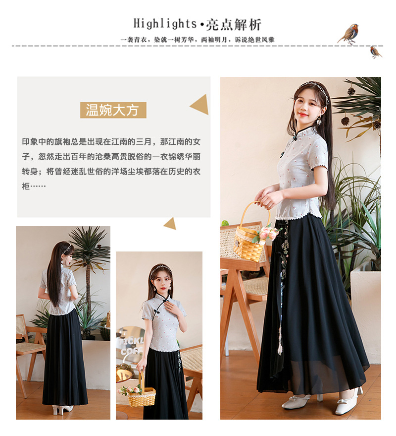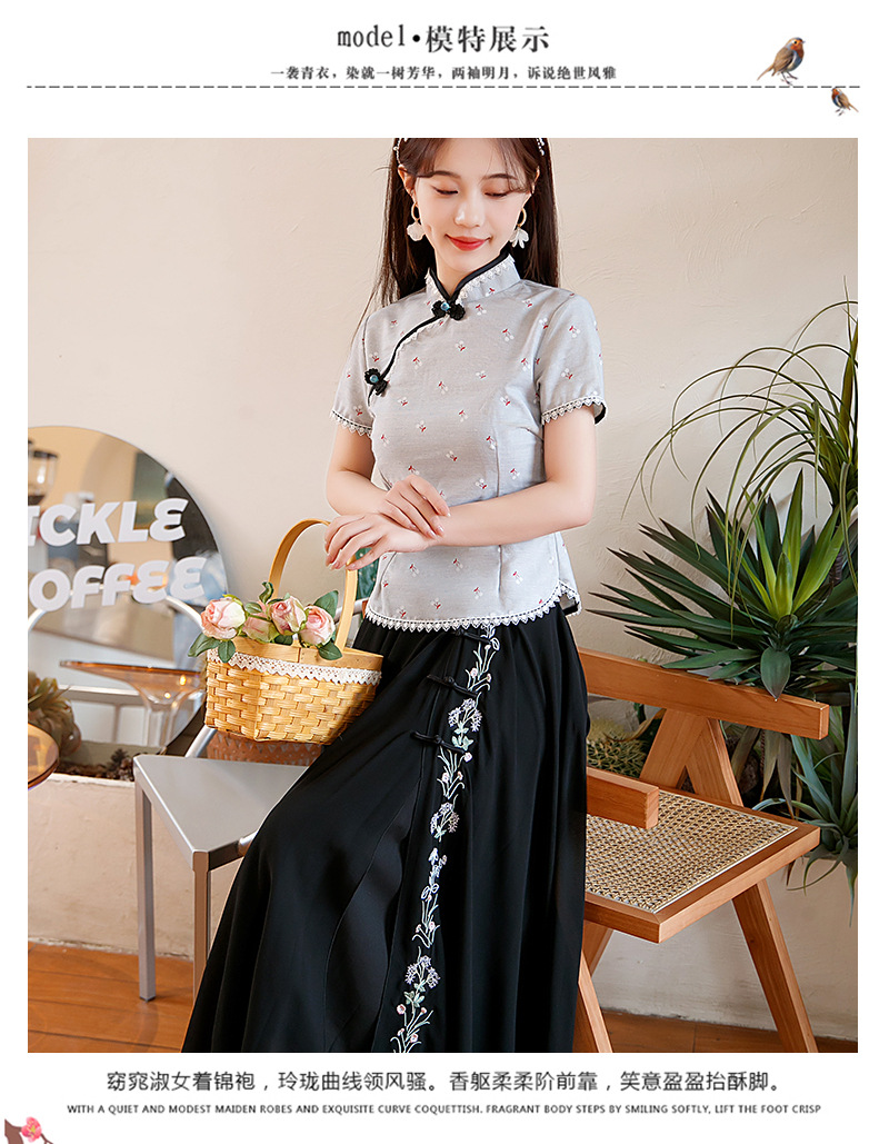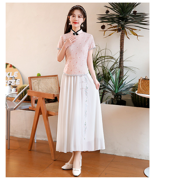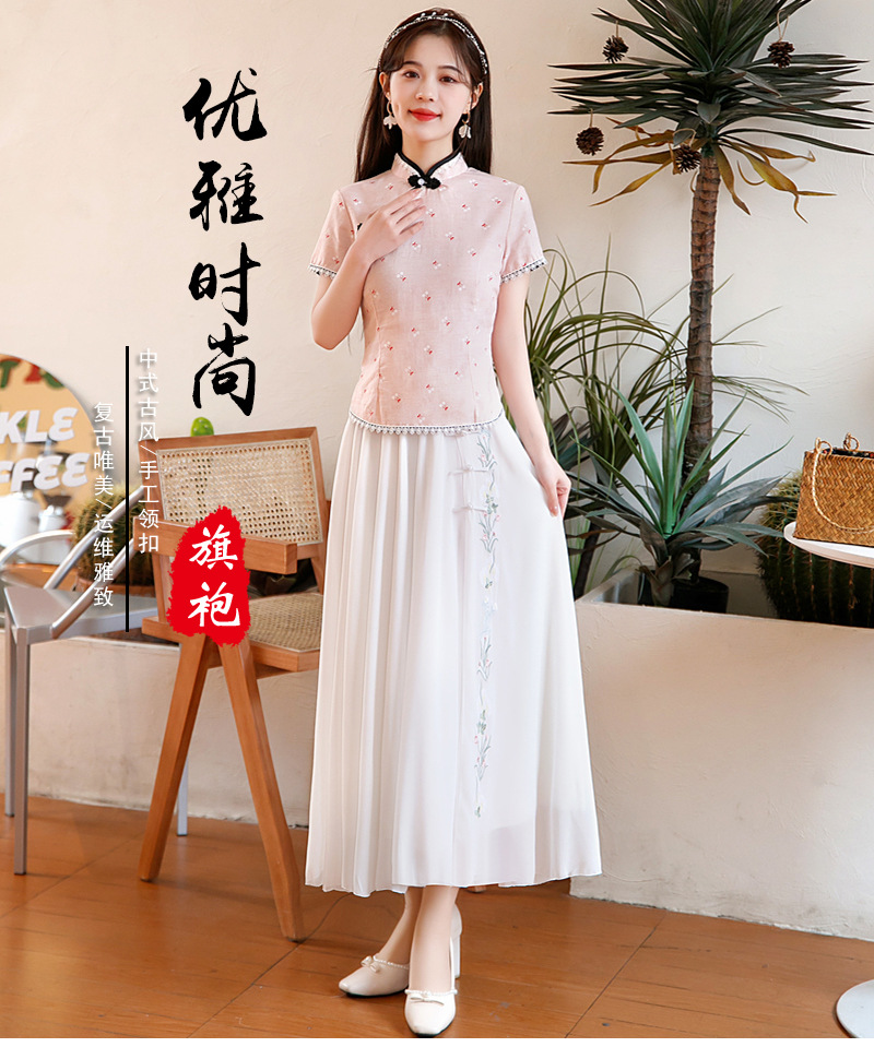 BJ-22002春季新款棉麻长款旗袍套装两件套 气质短袖改良旗袍连衣裙
