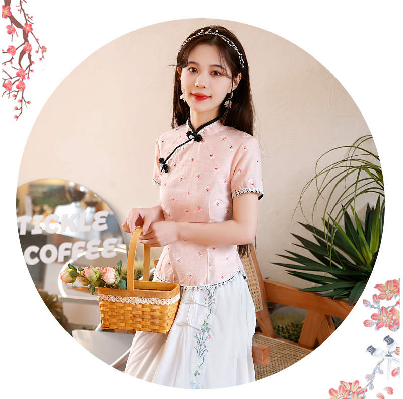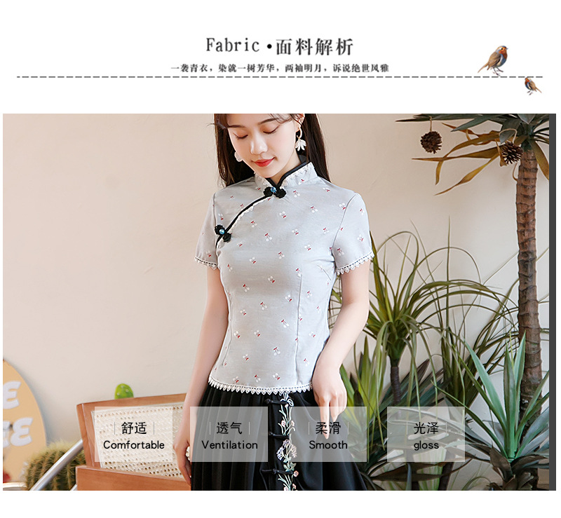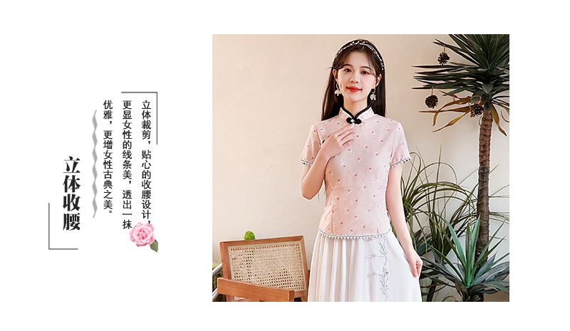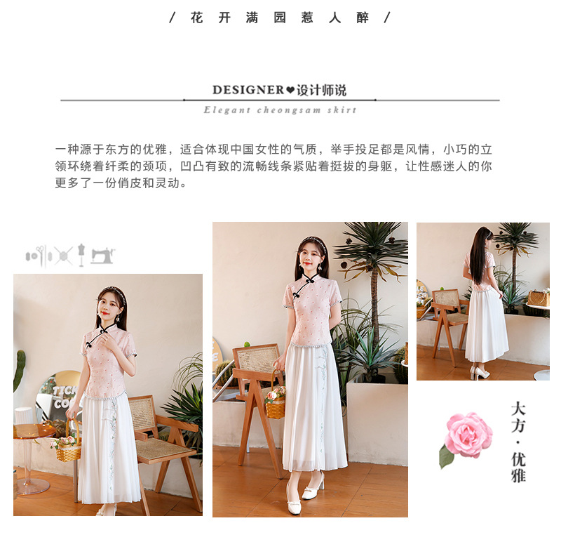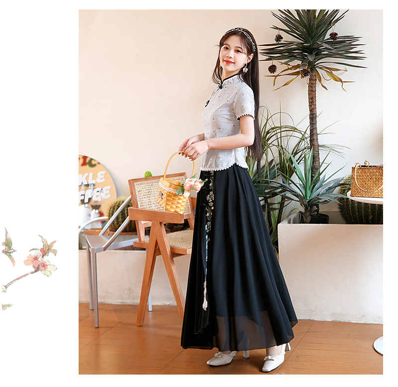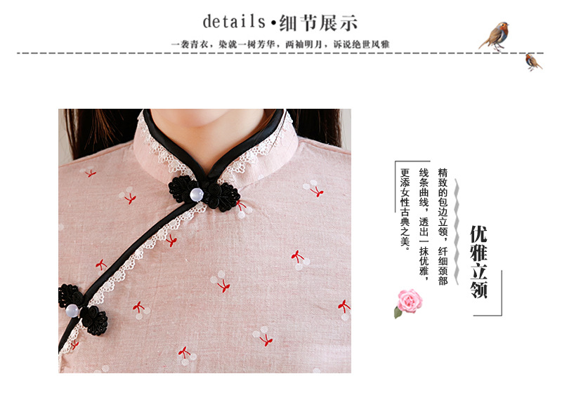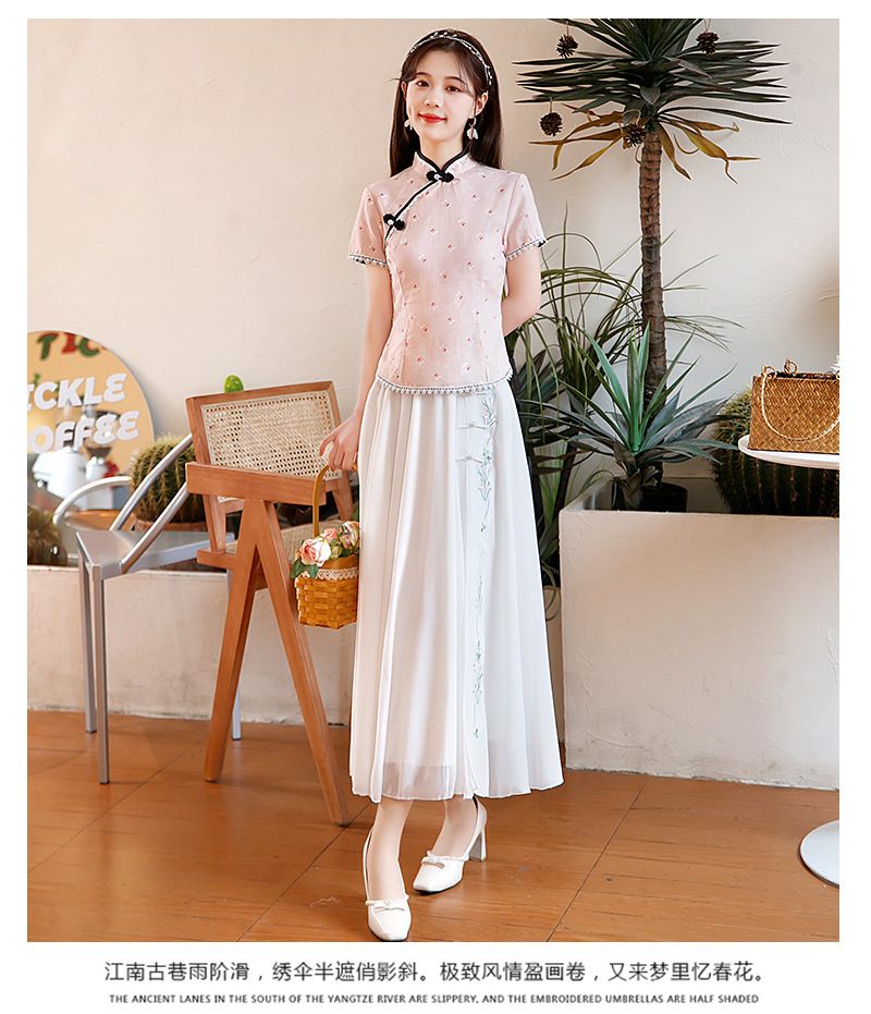 BJ-22002春季新款棉麻长款旗袍套装两件套 气质短袖改良旗袍连衣裙