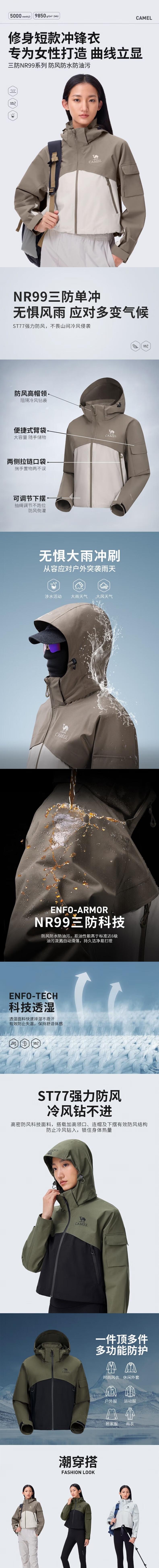 骆驼 女单层冲锋衣 A24CA46708