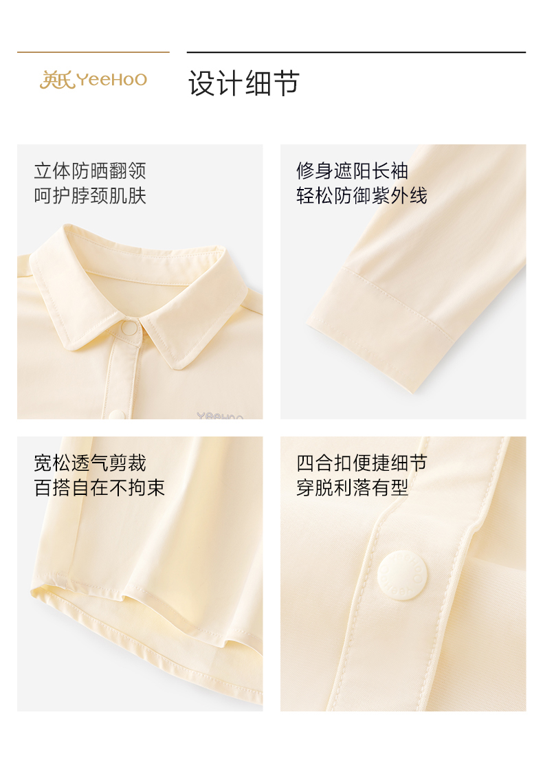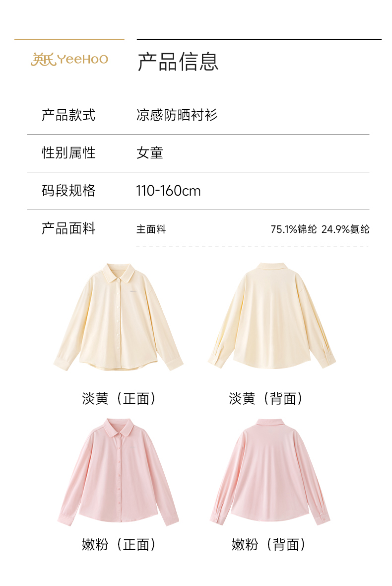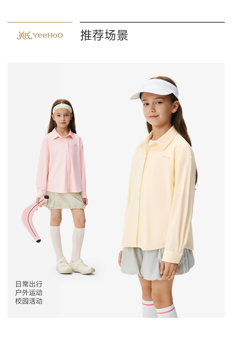 【凉感防晒+吸湿速干】英氏儿童外套女童春夏季凉感防晒衣简约百搭上衣吸湿排汗防晒衬衫