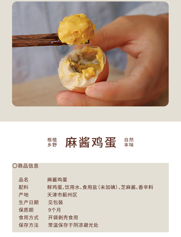 乡野人家【五香麻酱鸡蛋】熟食鸡蛋 正宗天津蓟县特产 零食卤蛋健康开袋即食中秋礼盒 咸鸭蛋烤鸭蛋咸蛋黄