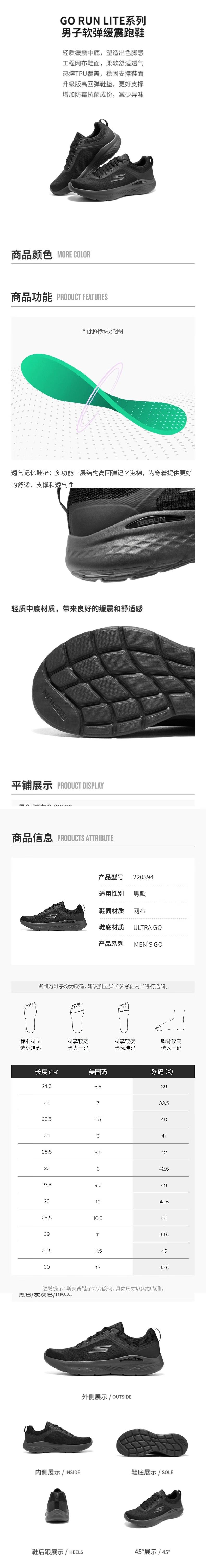 Skechers斯凯奇 男跑步鞋 220894WW-BKCC