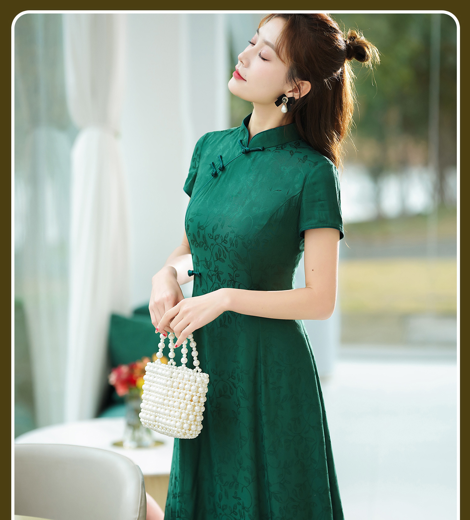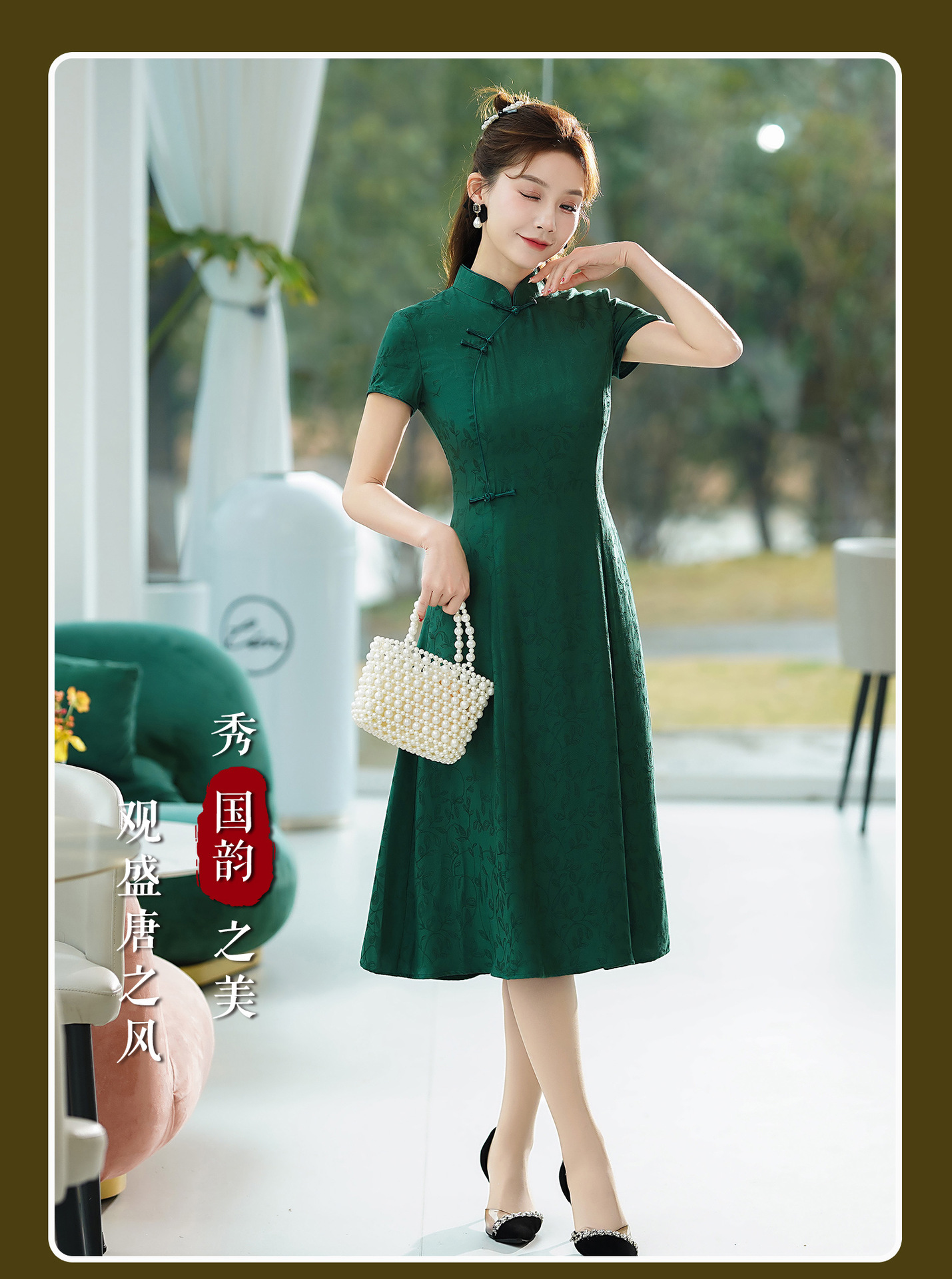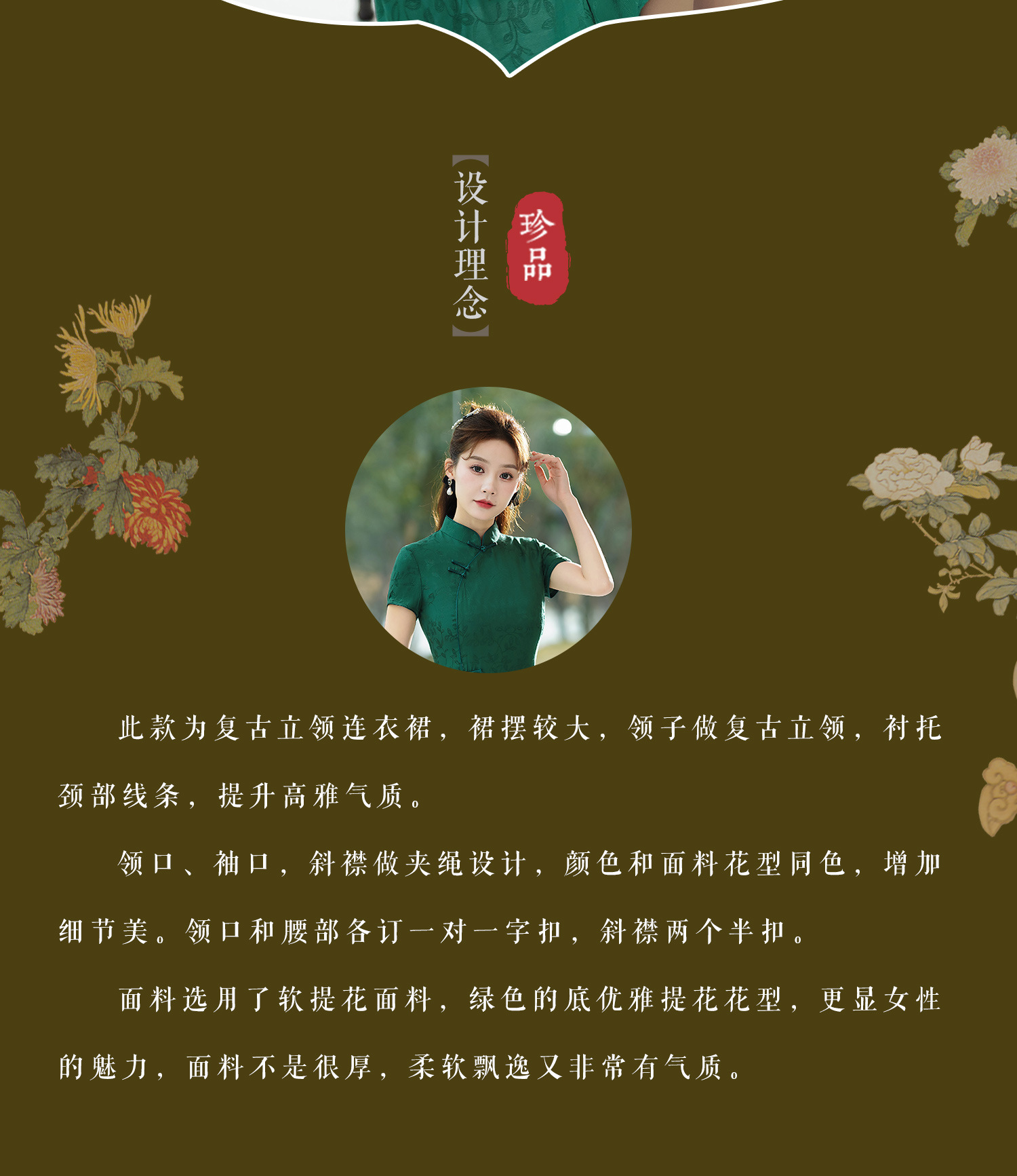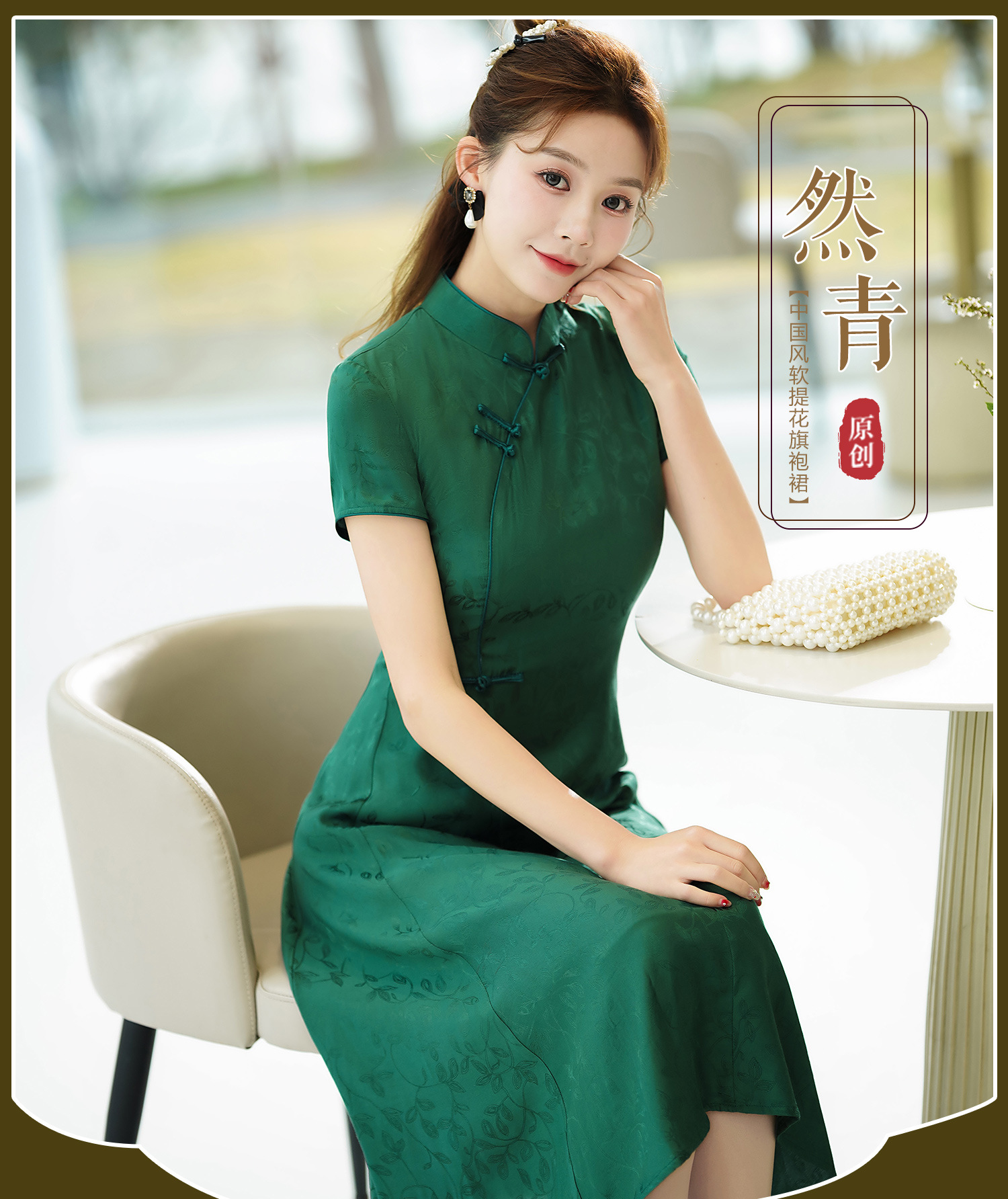 【然青】2023春夏新款优雅短袖复古提花日常A摆改良旗袍连衣裙