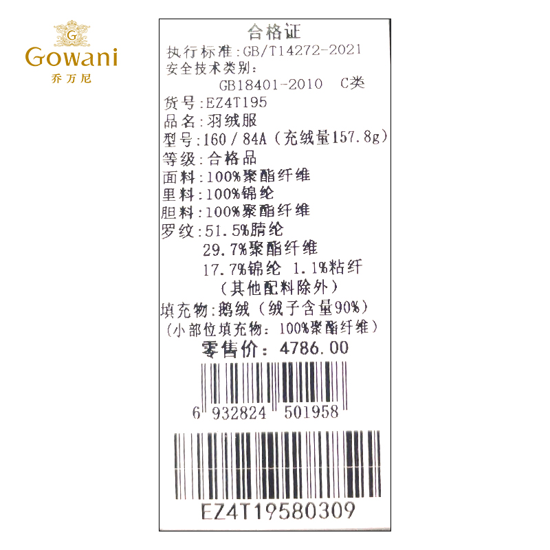 Gowani/乔万尼2025新款鹅绒服女款冬季保暖短款泡芙羽绒服EZ4T195