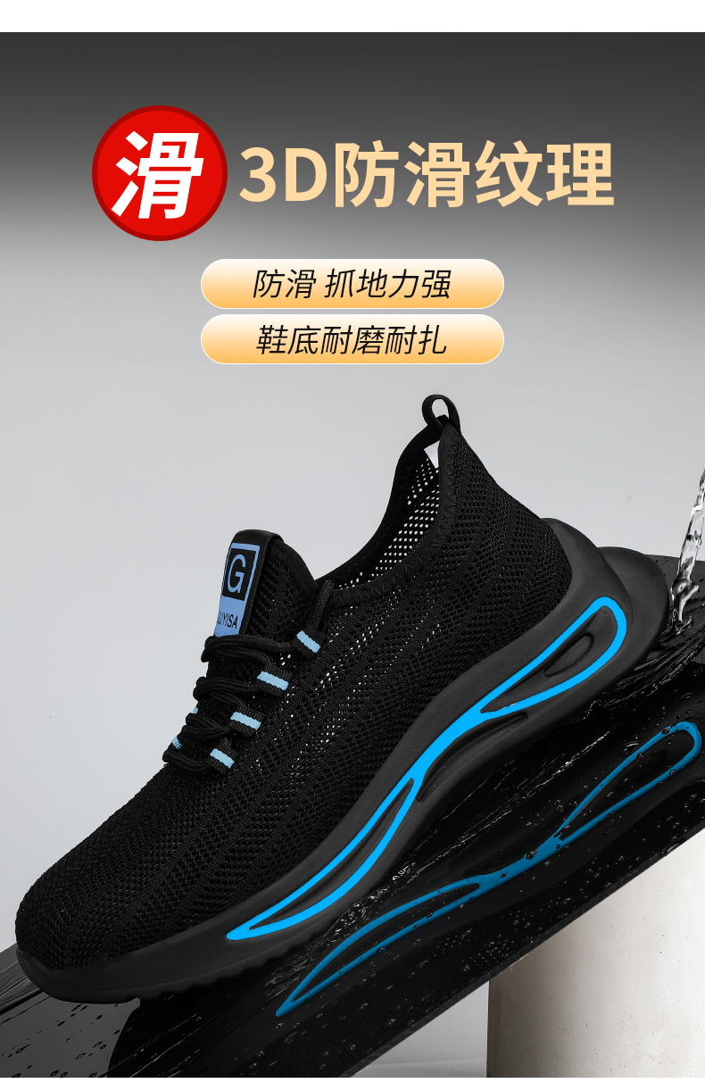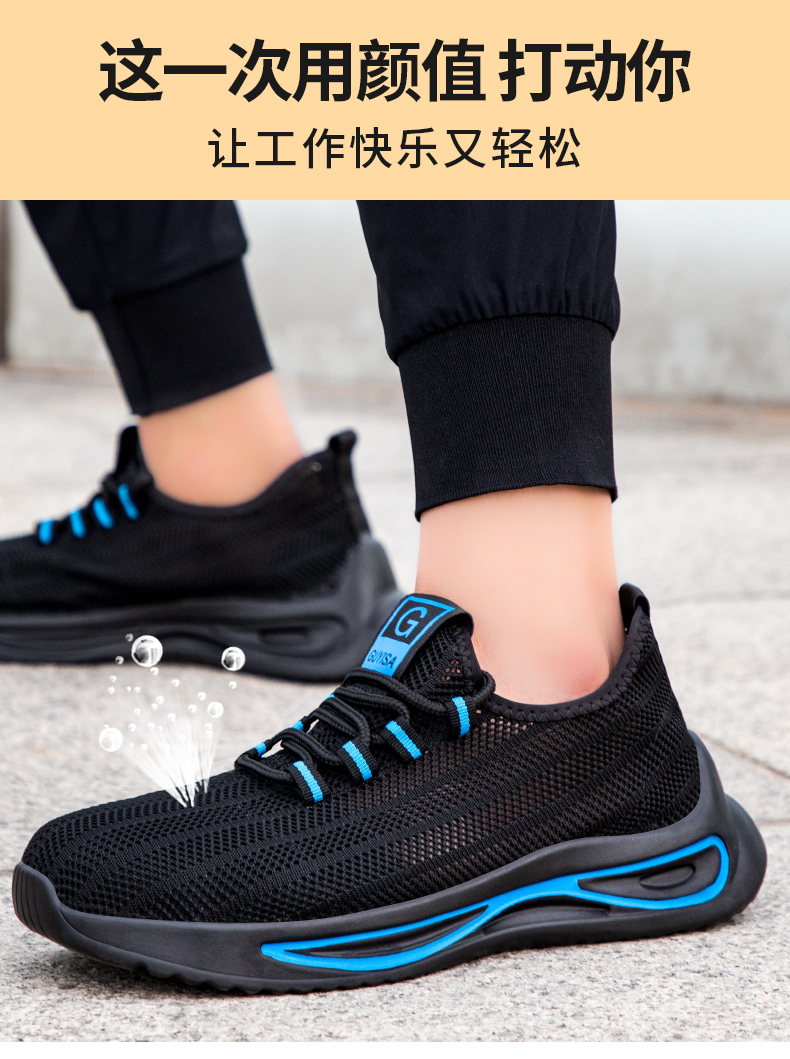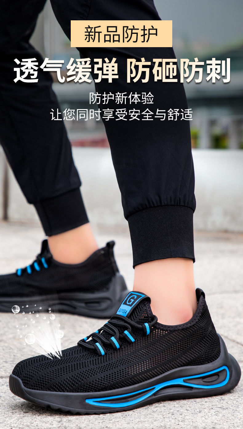 新款实心底劳保鞋透气安全工作鞋钢包头防砸防刺穿耐磨舒适
