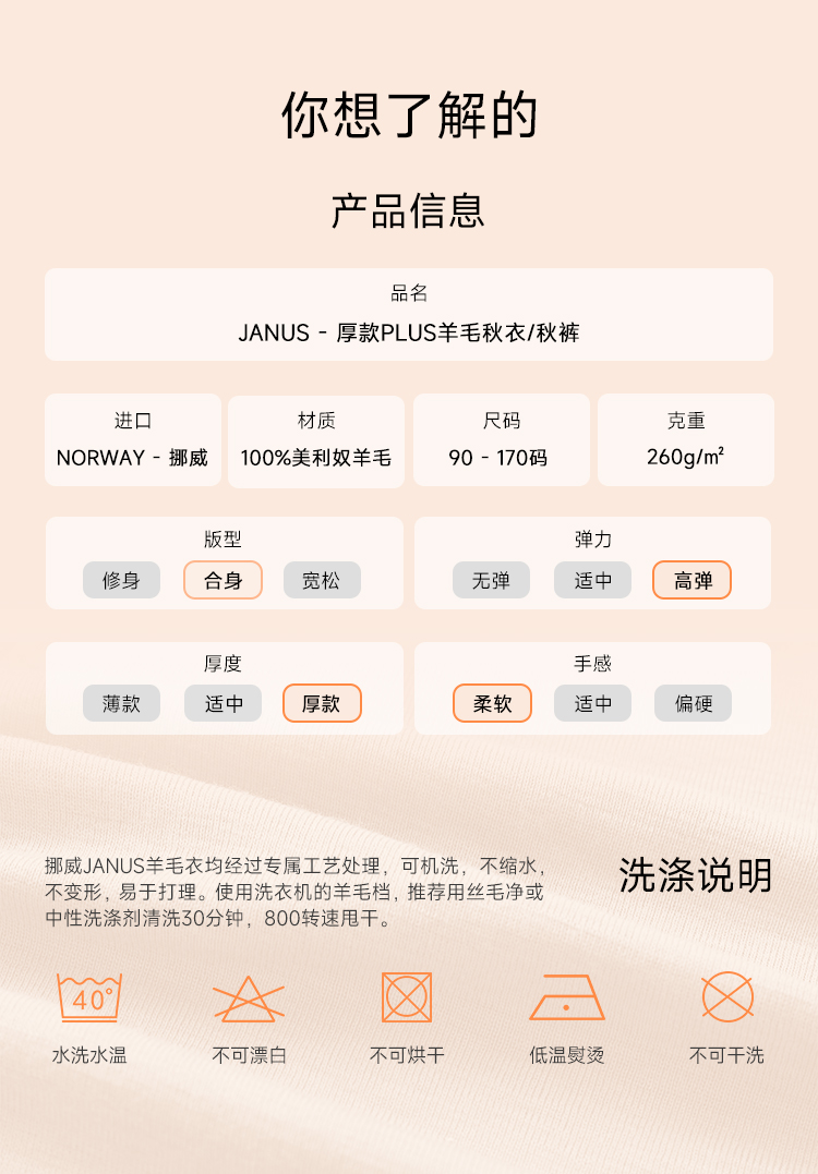 【2025新色】JANUS儿童羊毛暖+款秋衣秋裤