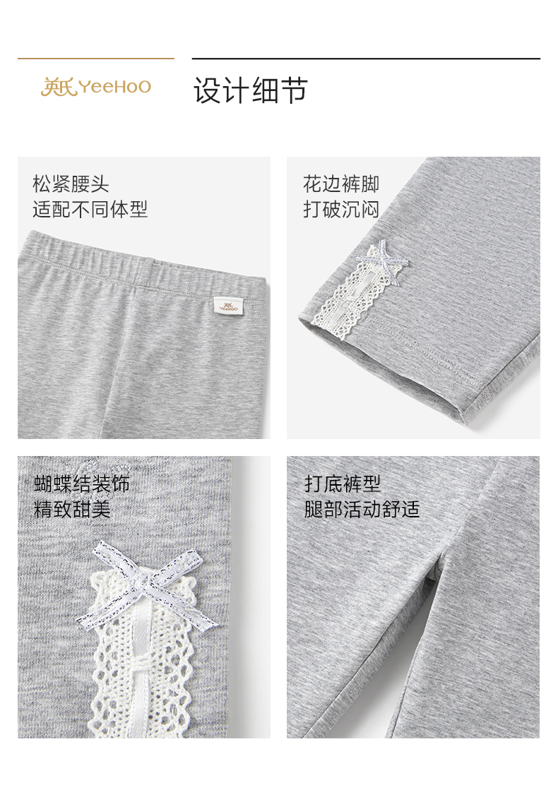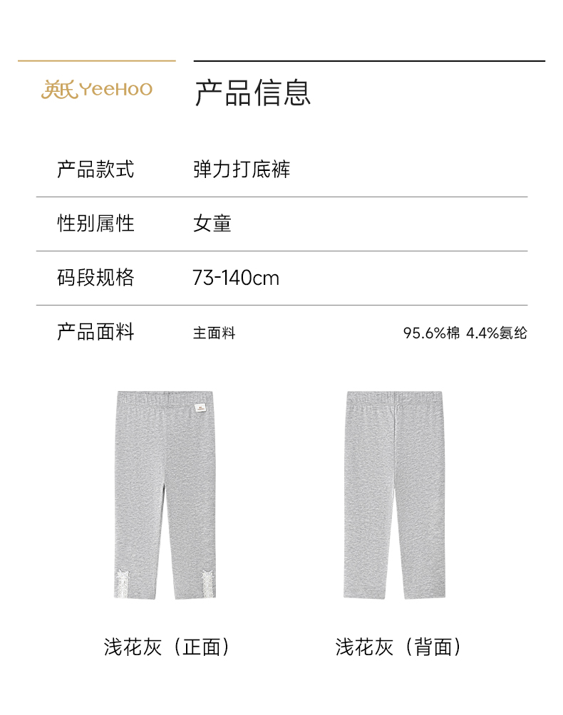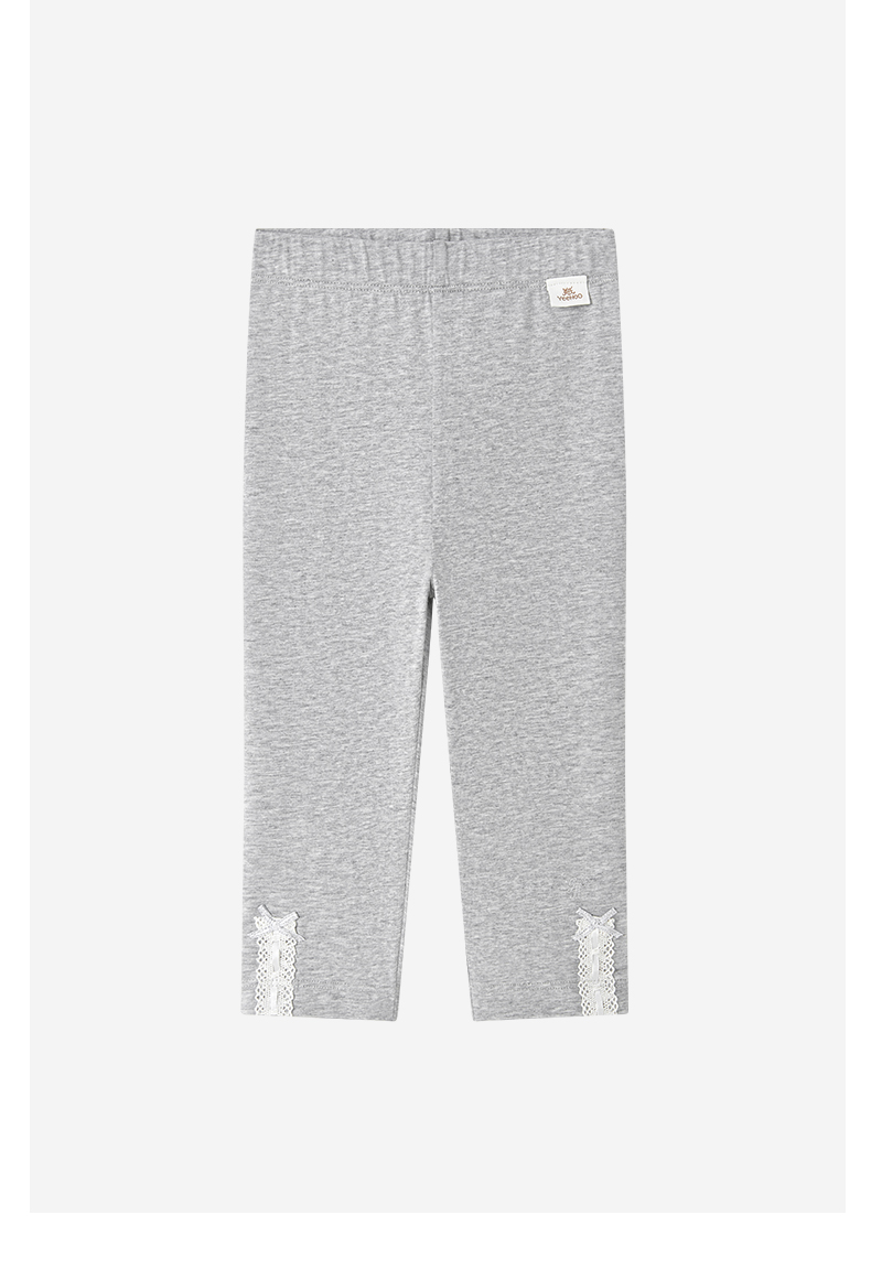 【商场同款】英氏儿童裤子女童夏季浅灰针织打底裤百搭休闲长裤