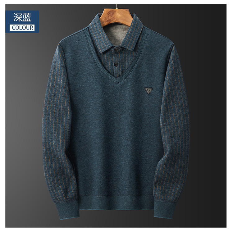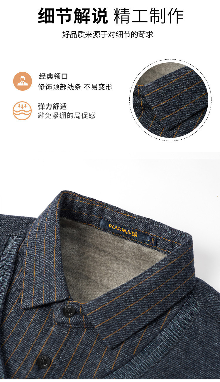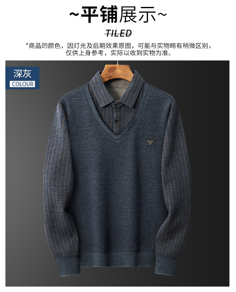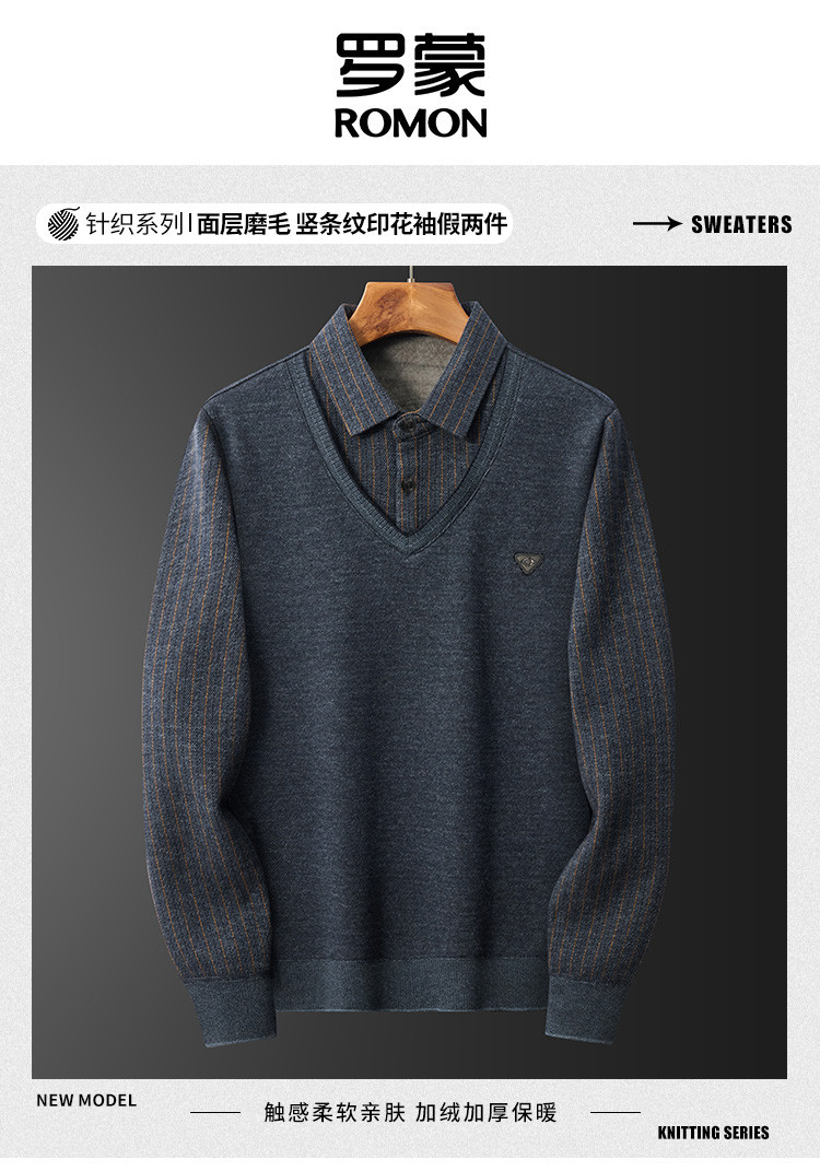 27DKYP2292R【加绒加厚】罗蒙秋冬男装假两件衬衫胸标点缀针织衫男加绒毛衣男加绒衬衫男长袖