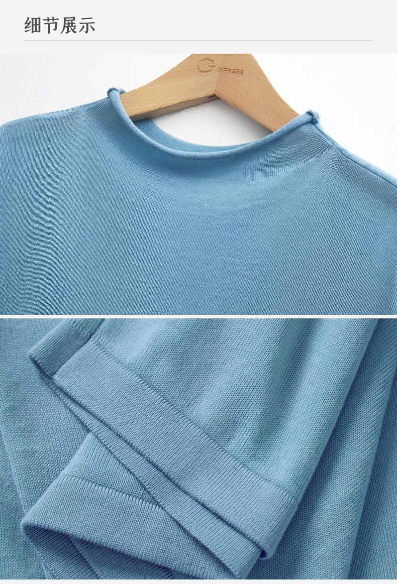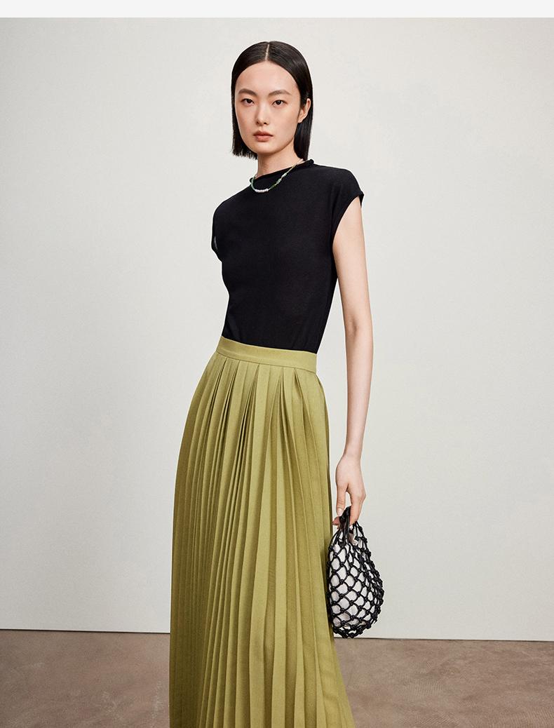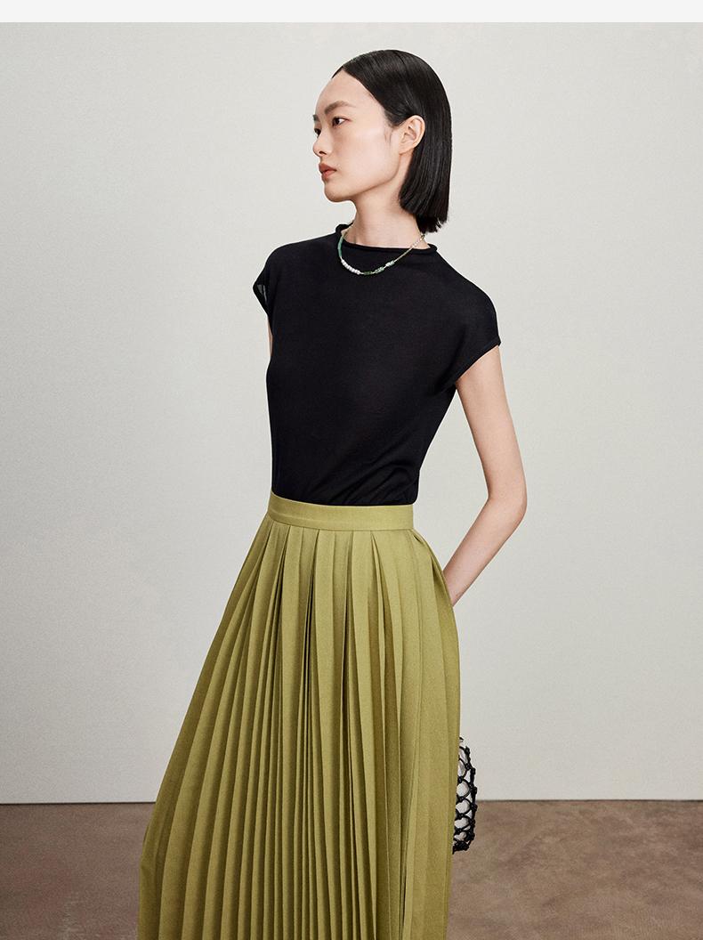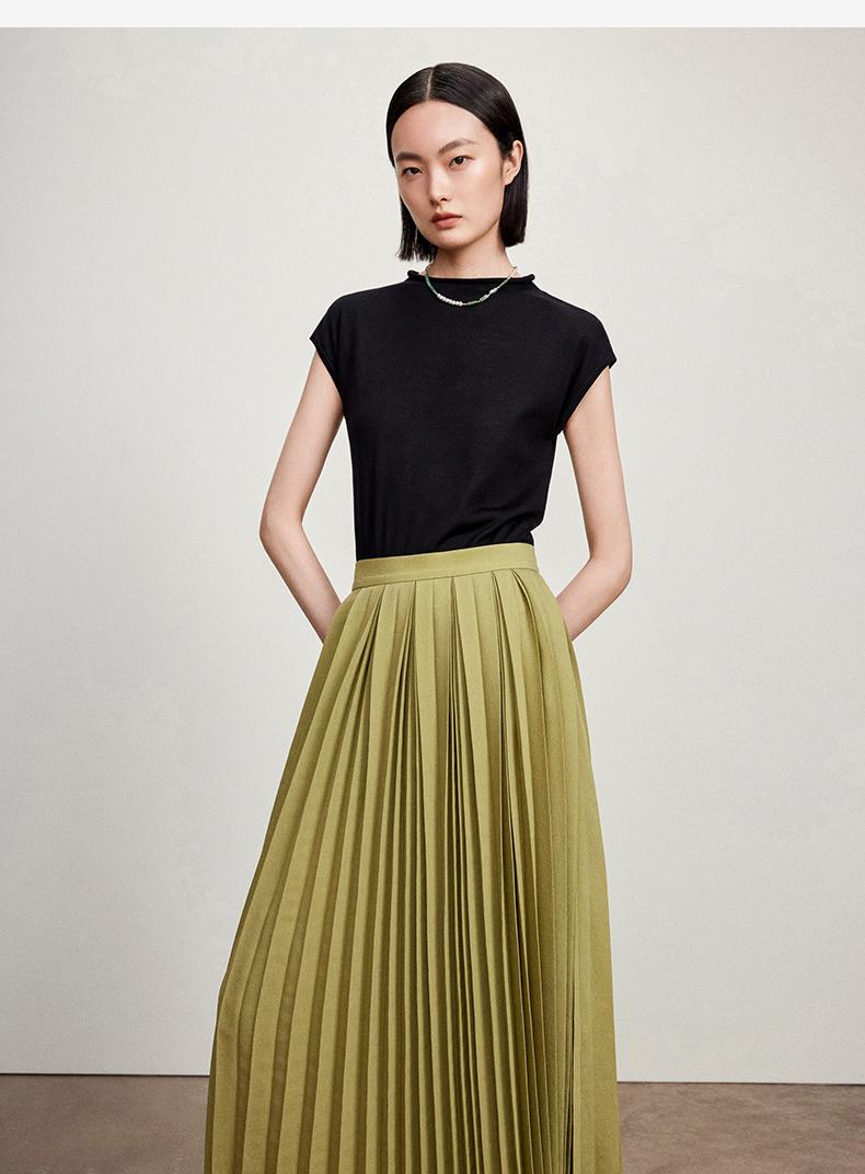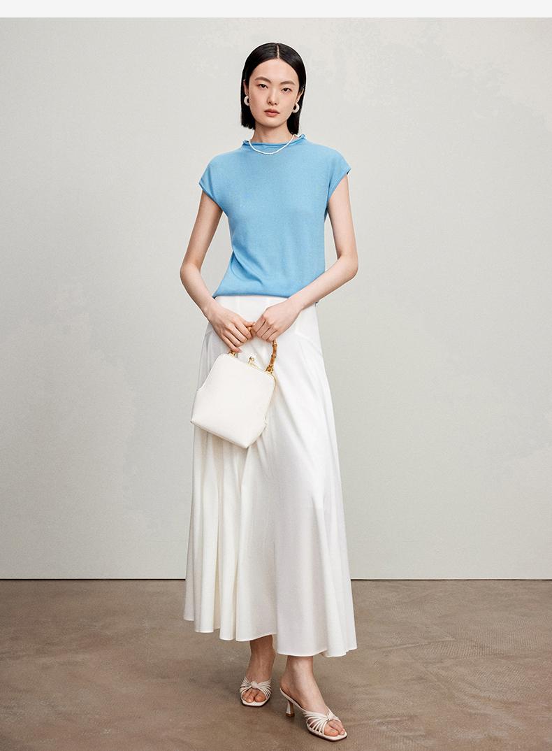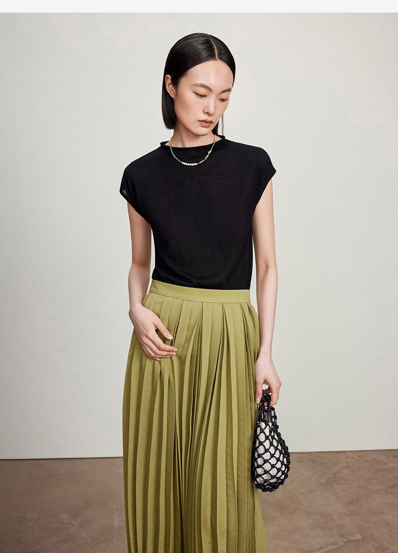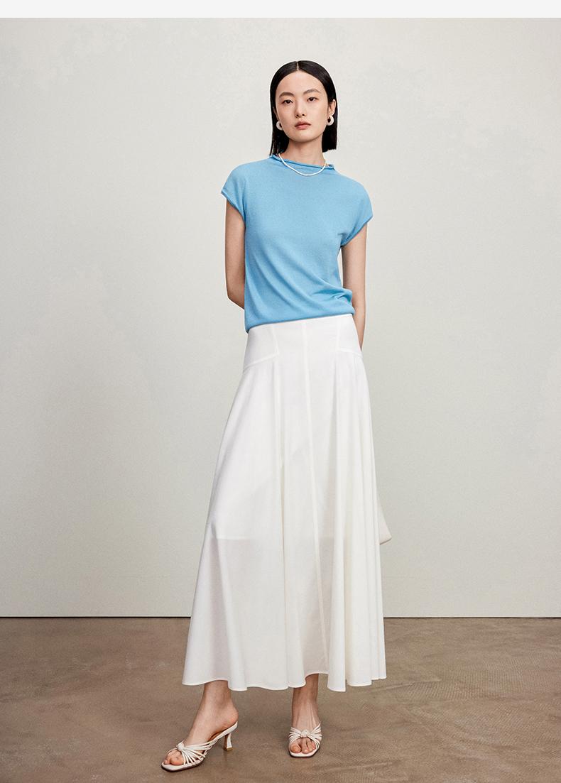 西嘉【现货】C+IMPRESS/西嘉全天丝短袖女t恤夏卷边半高领简约一字肩莱赛尔上衣T2402029