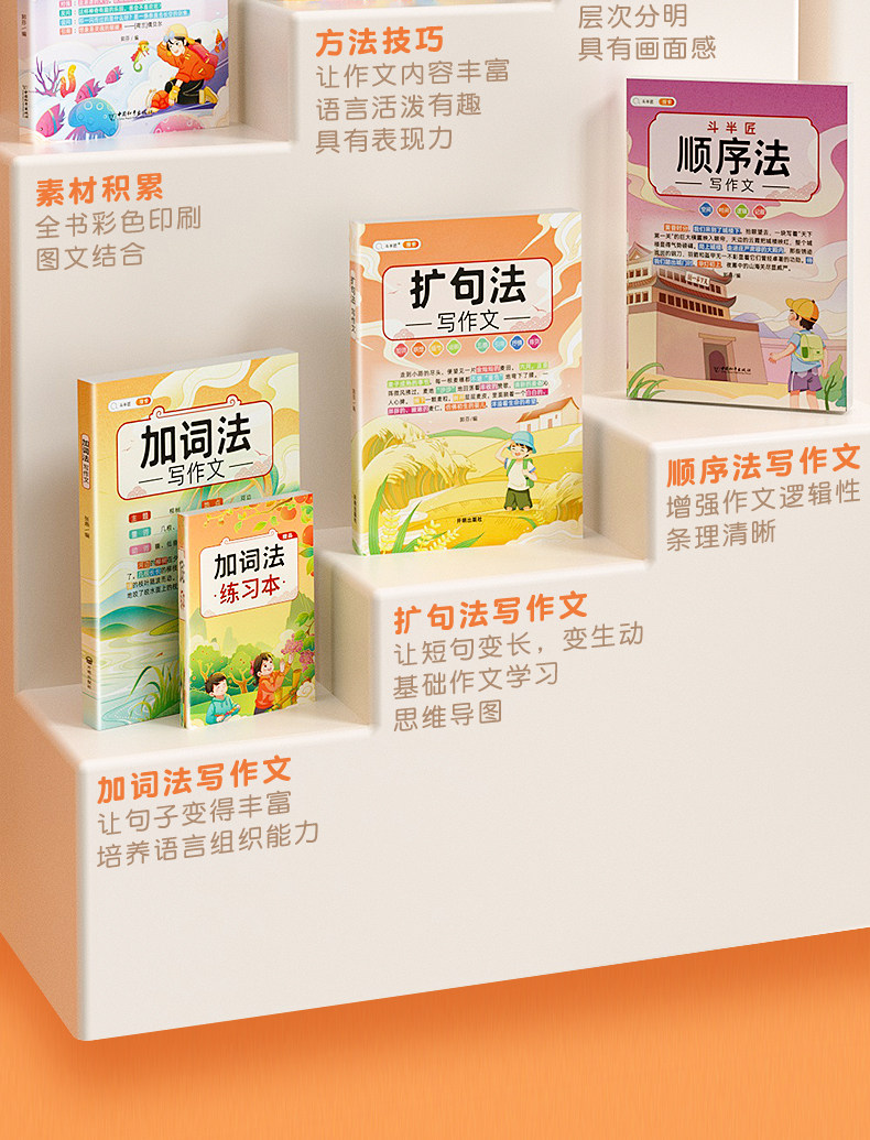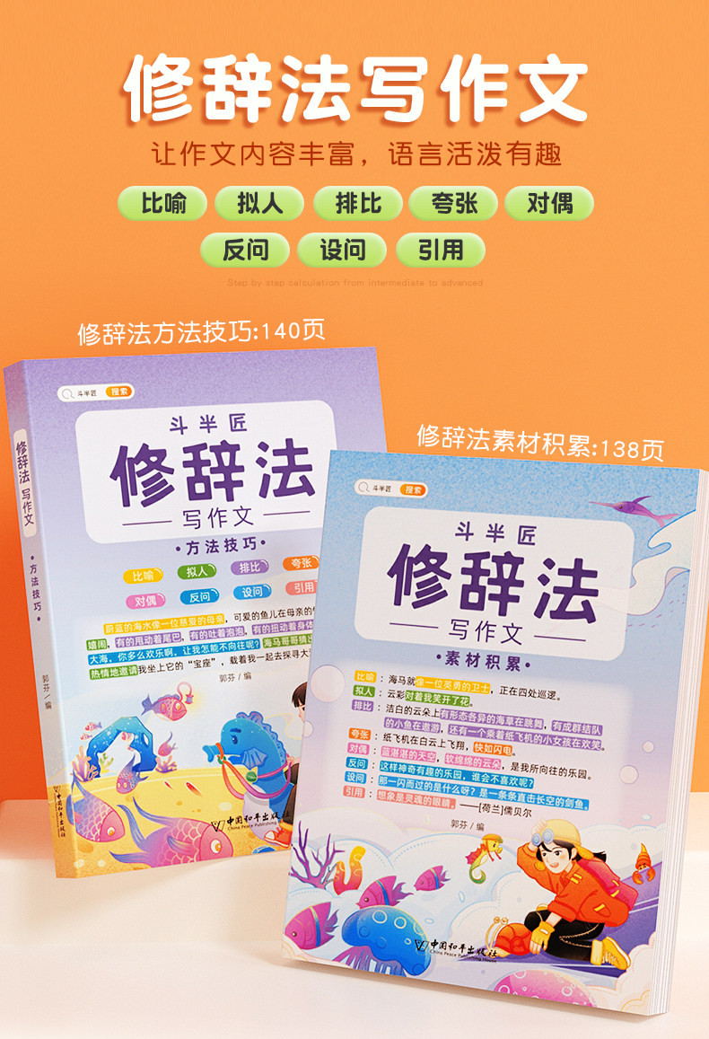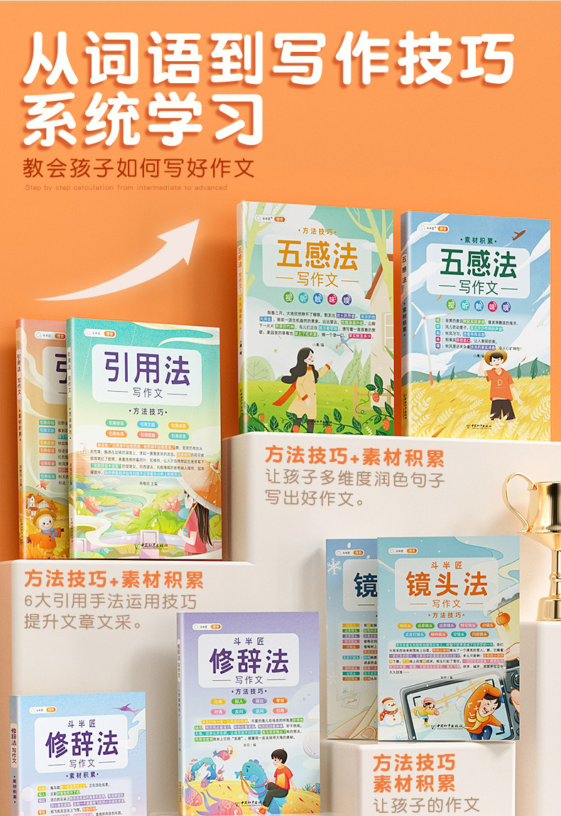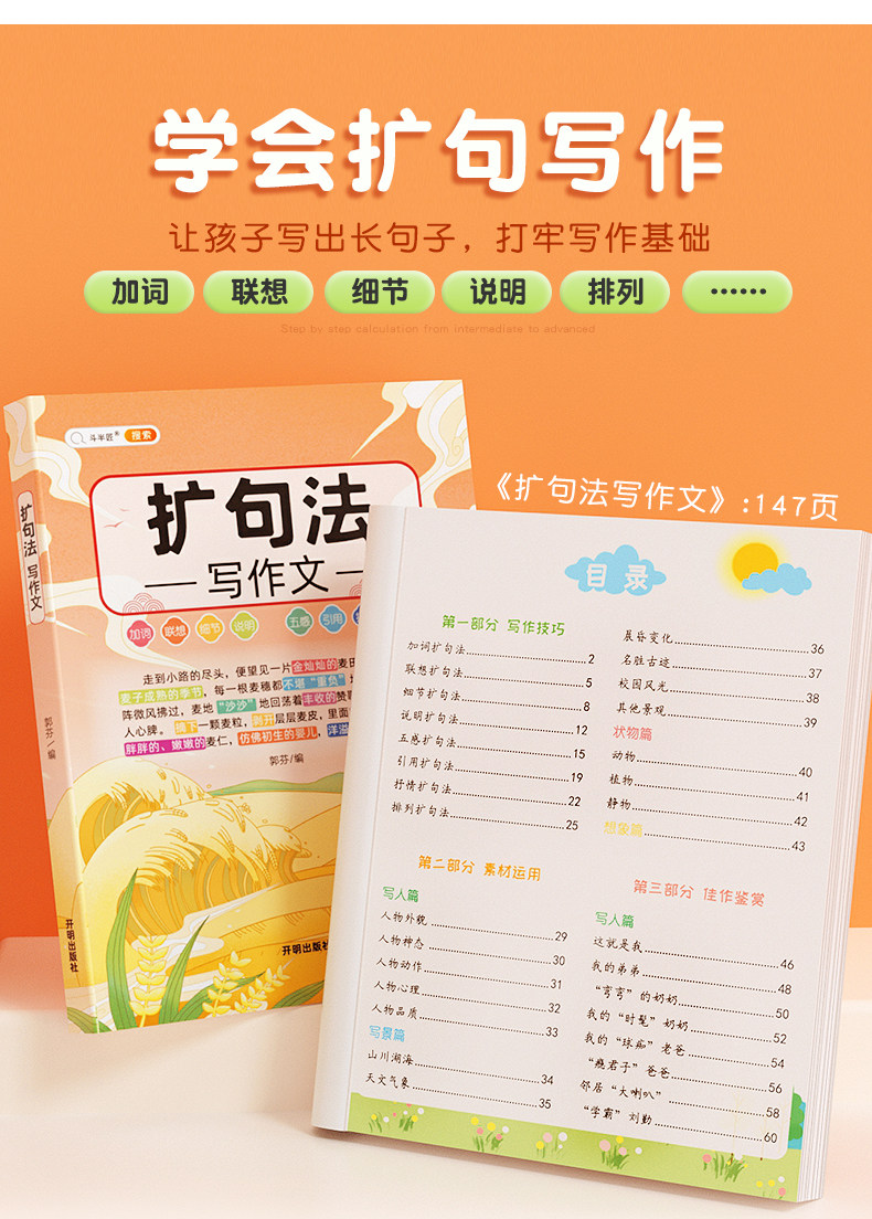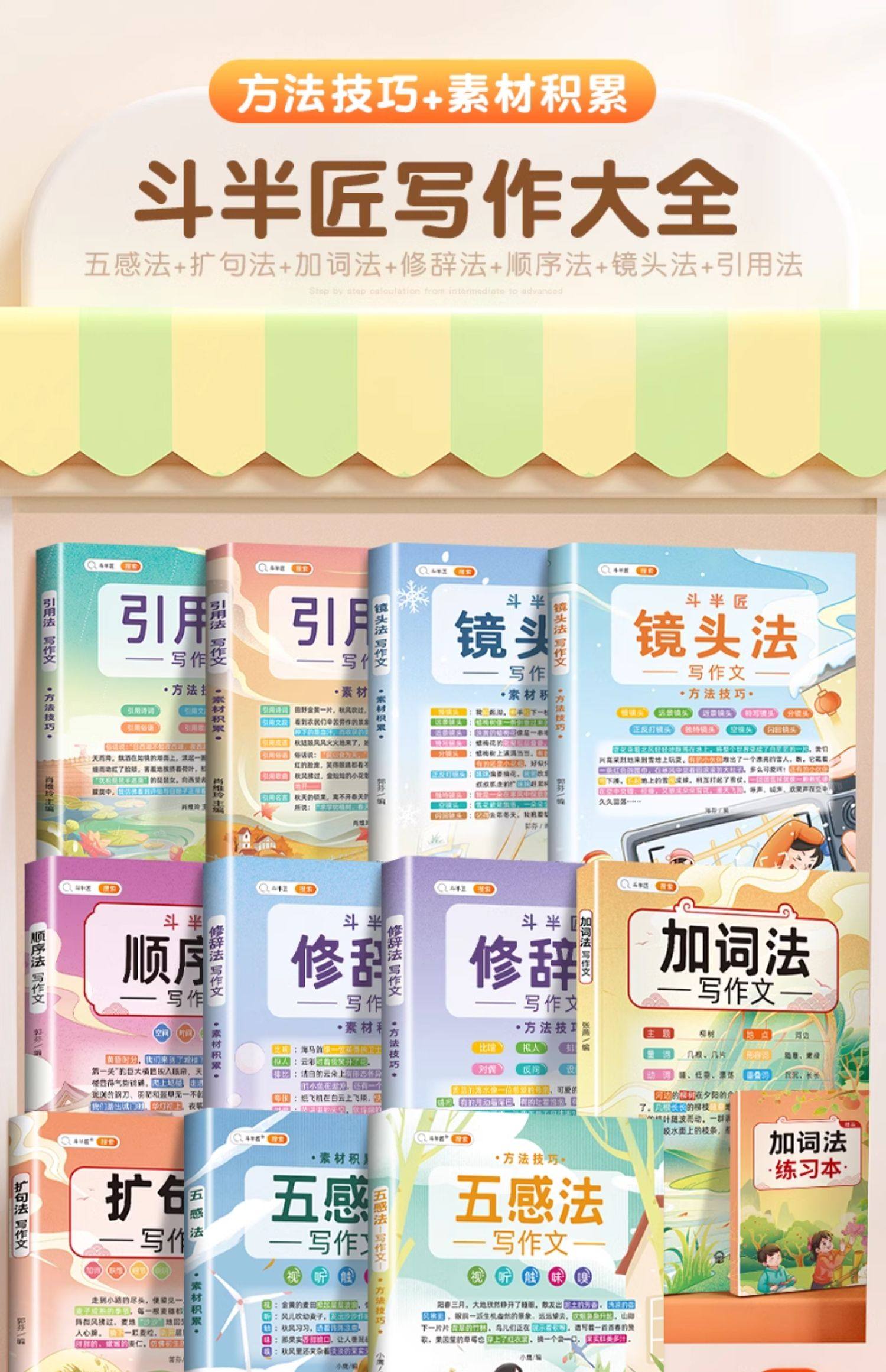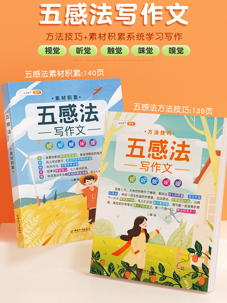 【斗半匠】五感法写作文三到六年级扩句法加词法修辞法写作技巧小学生优秀作文书大全三四五年级素材积累好词好句好段同步写作入门