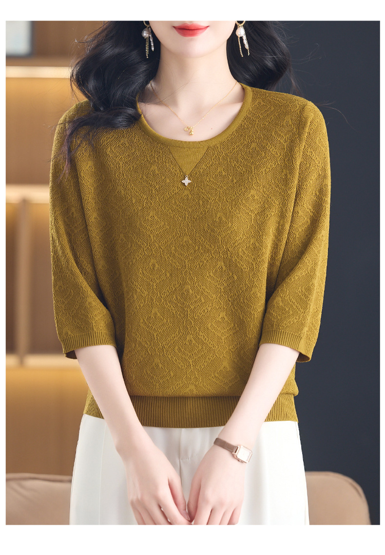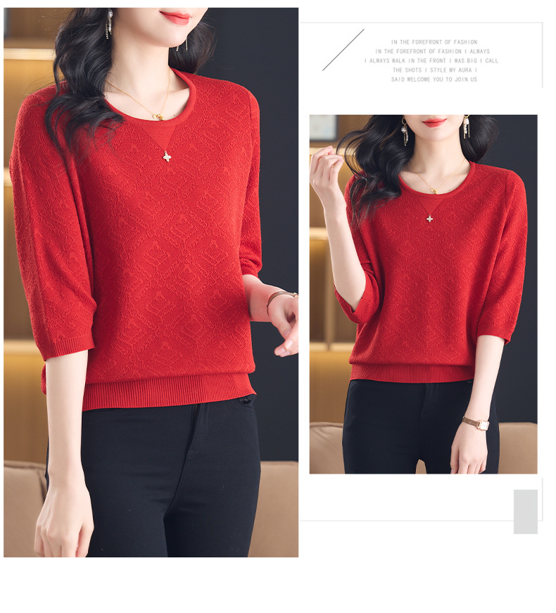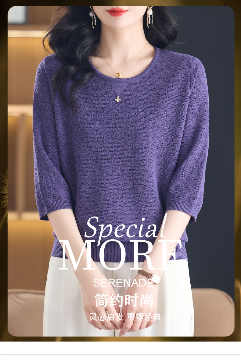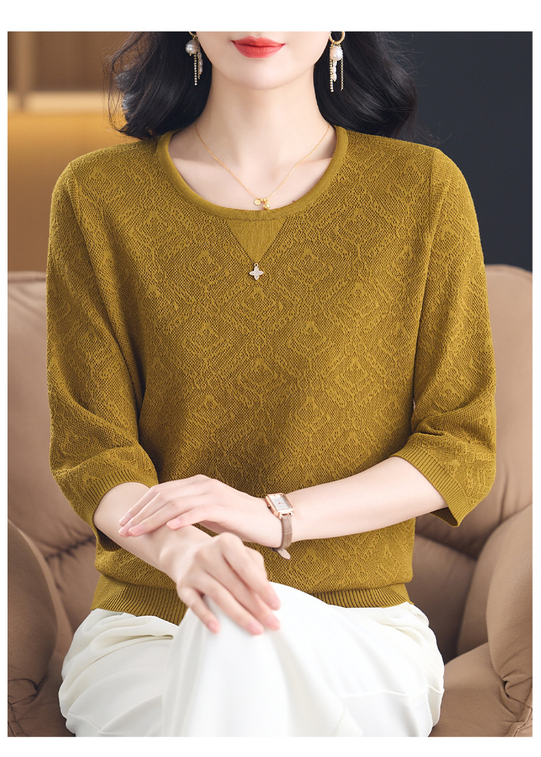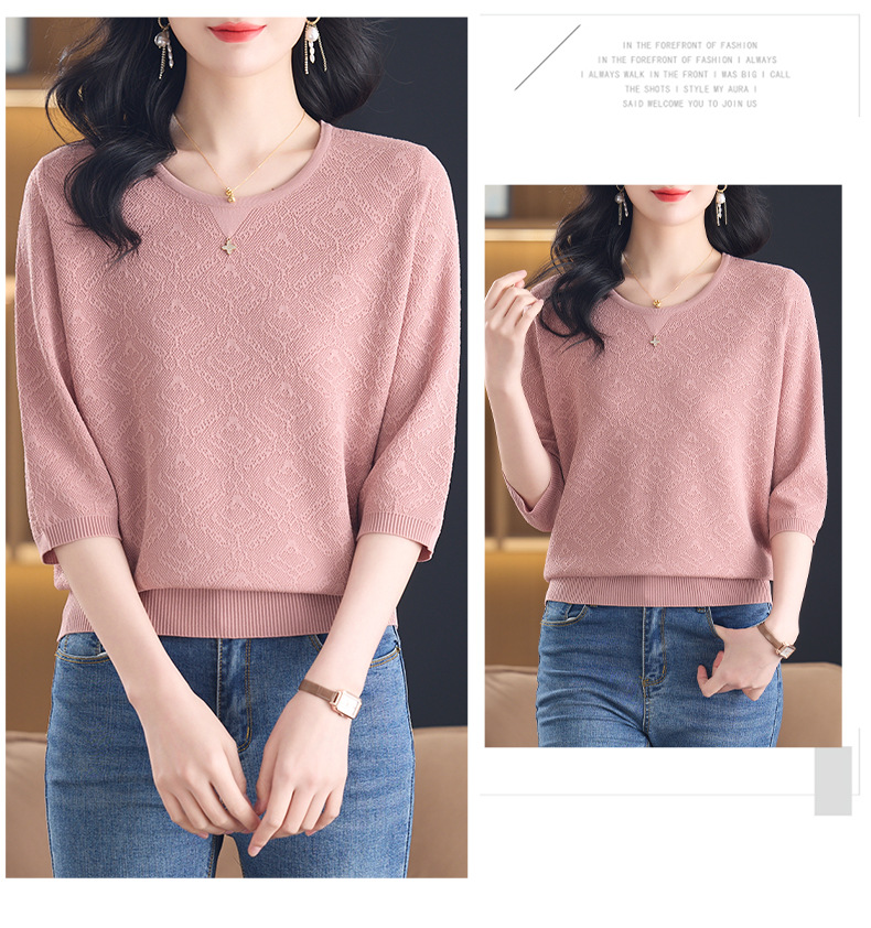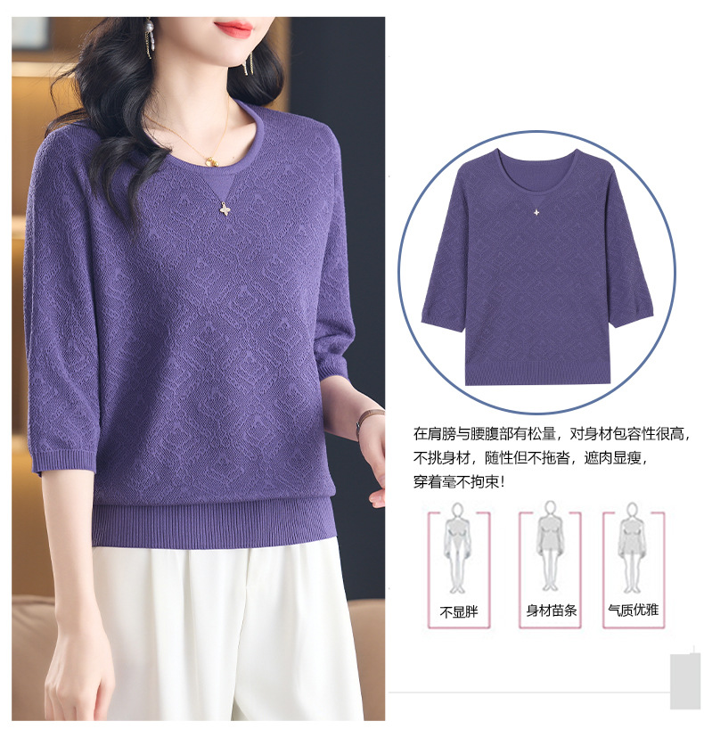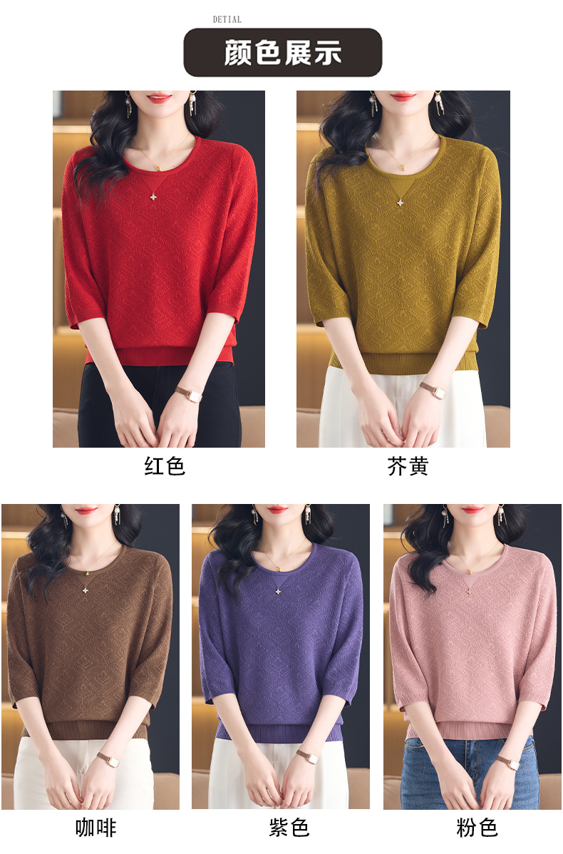 CC-13-2823洋气圆领半袖针织衫女士2025春秋新款遮肚子七分中袖上衣