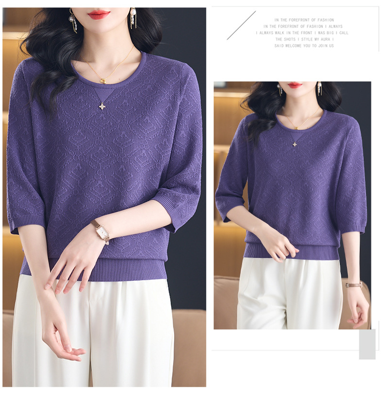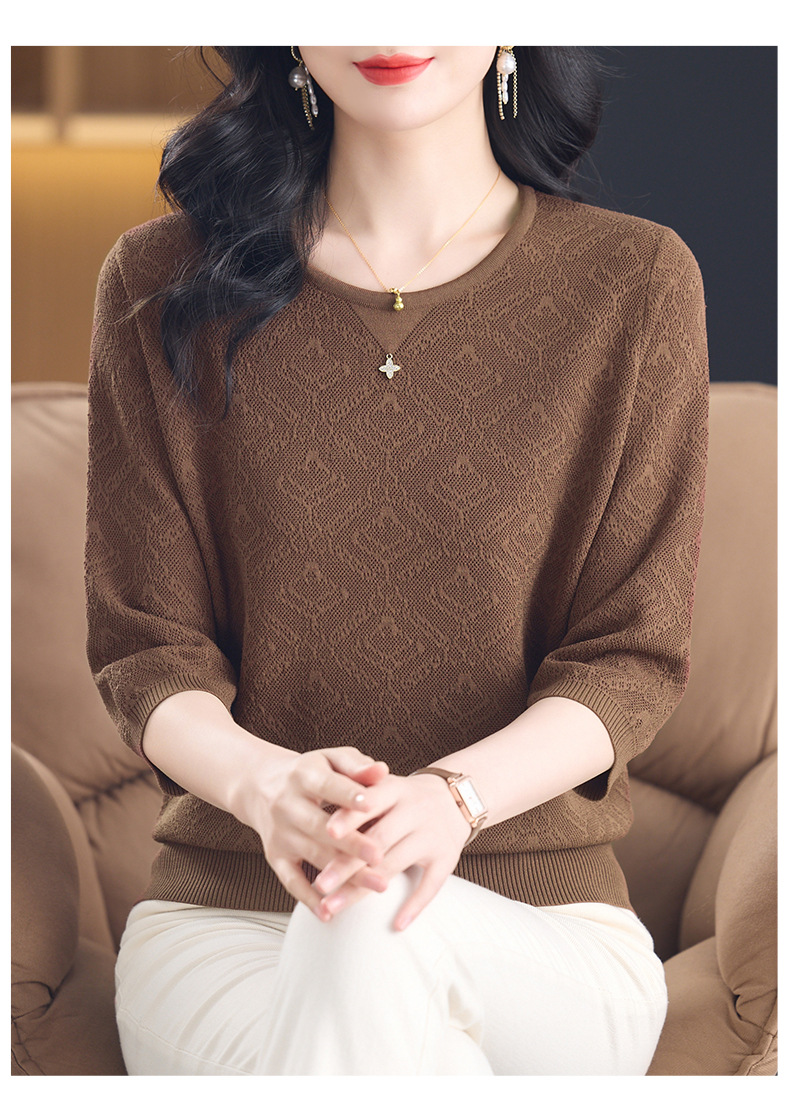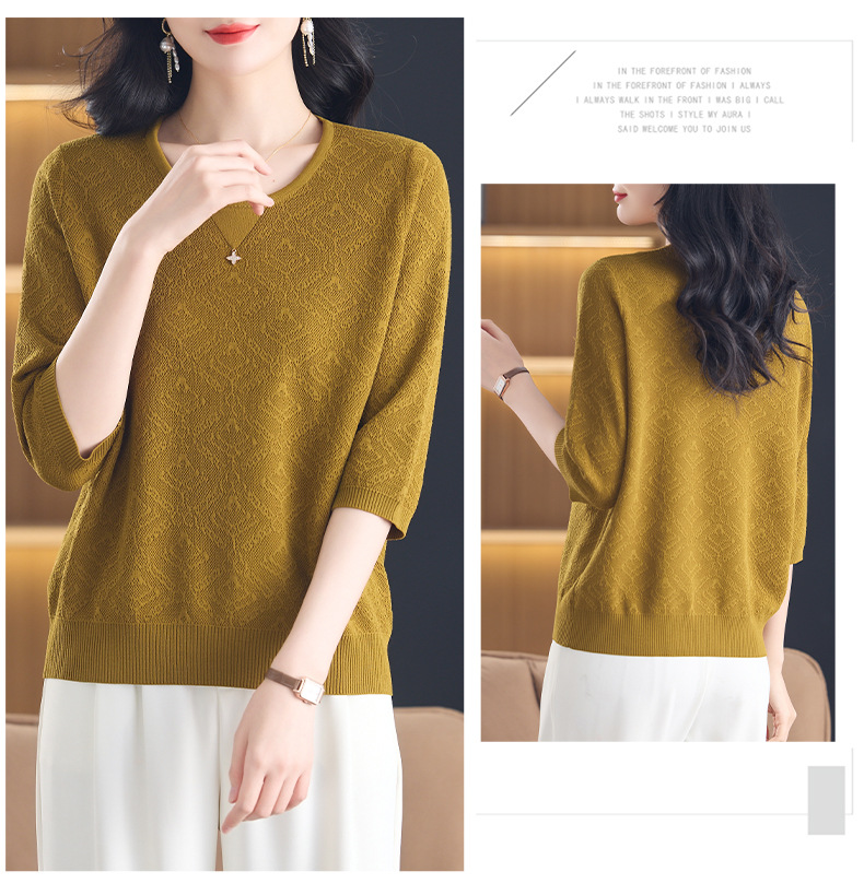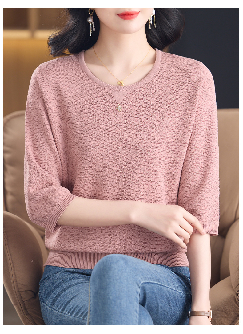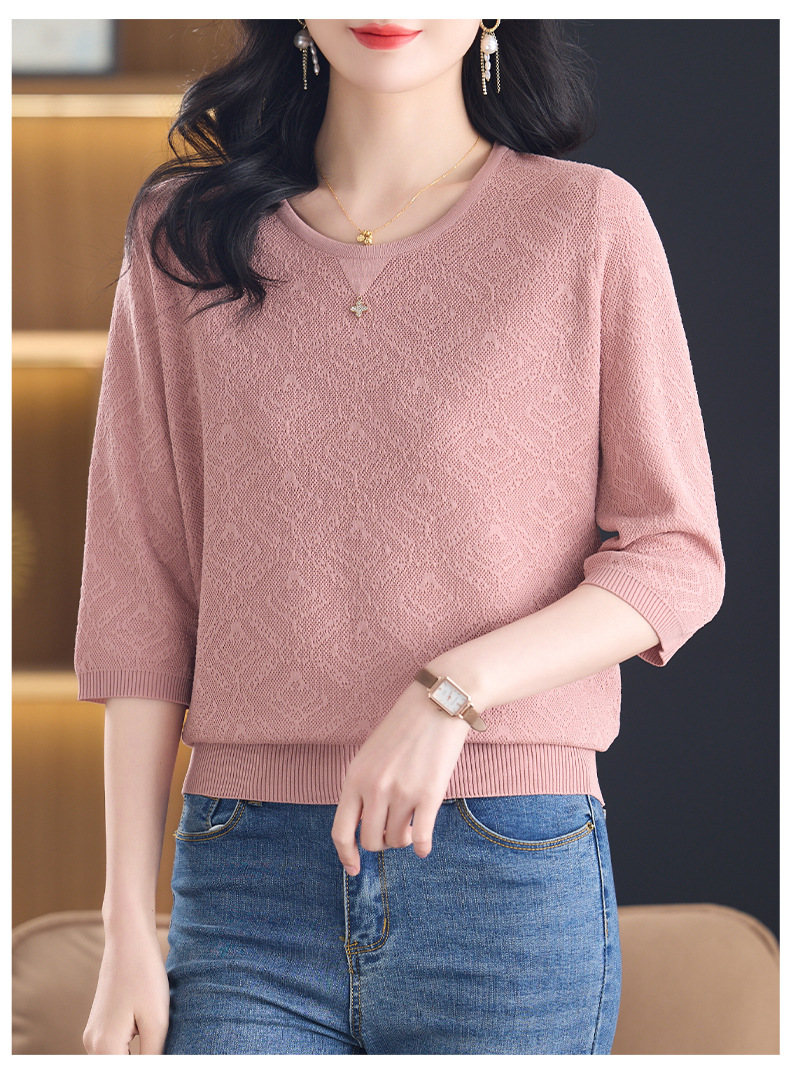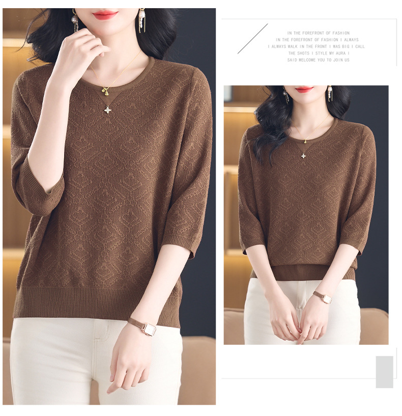 CC-13-2823洋气圆领半袖针织衫女士2025春秋新款遮肚子七分中袖上衣