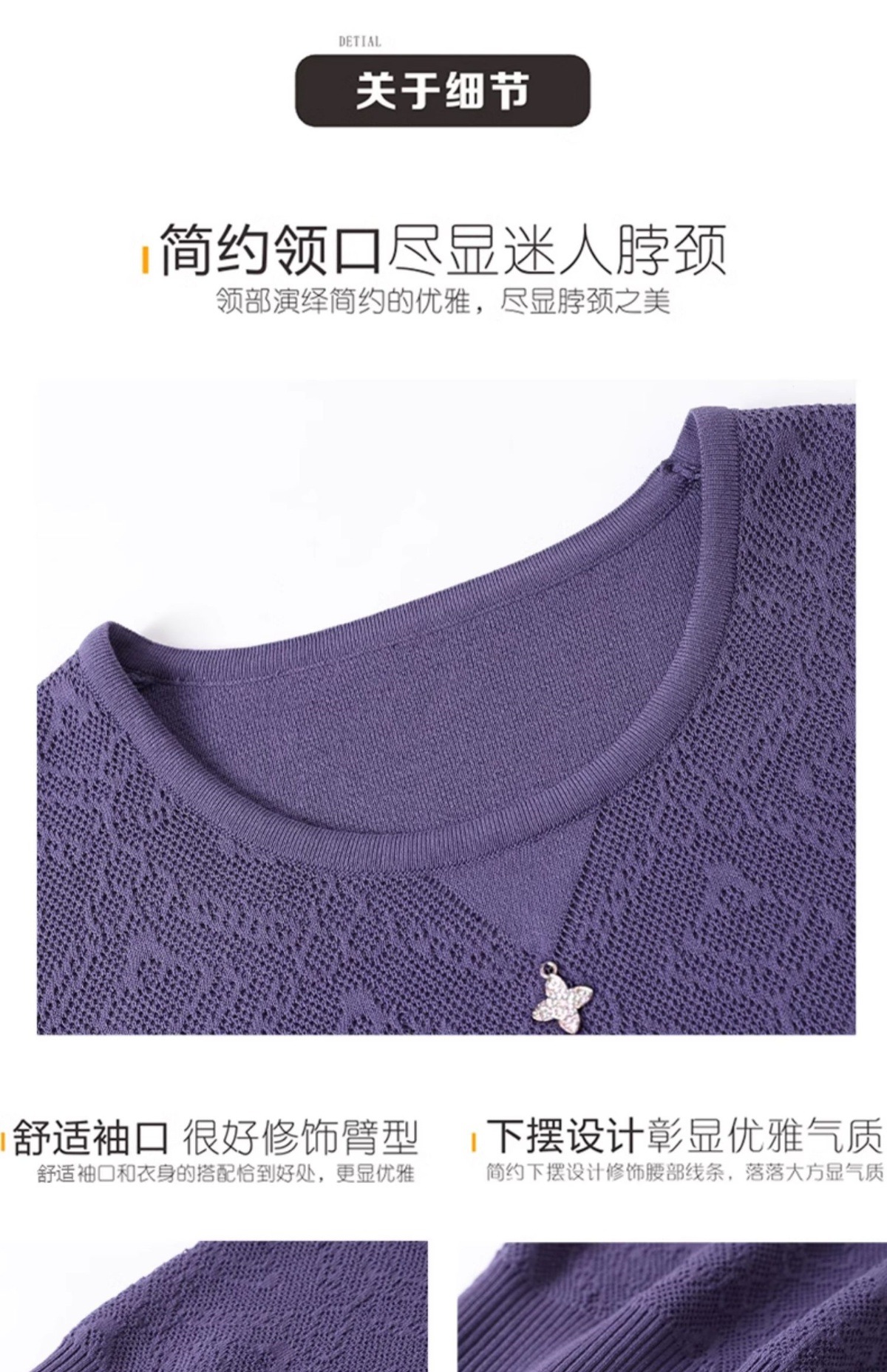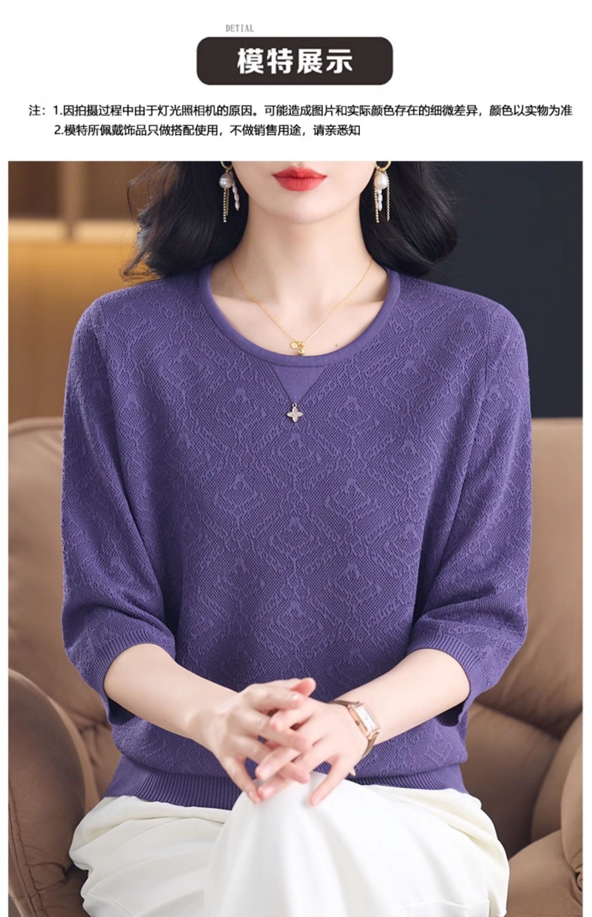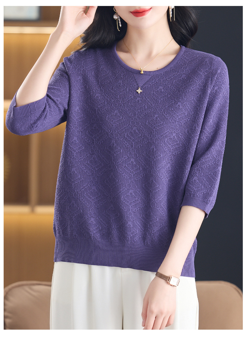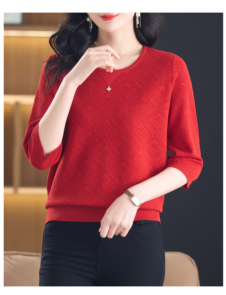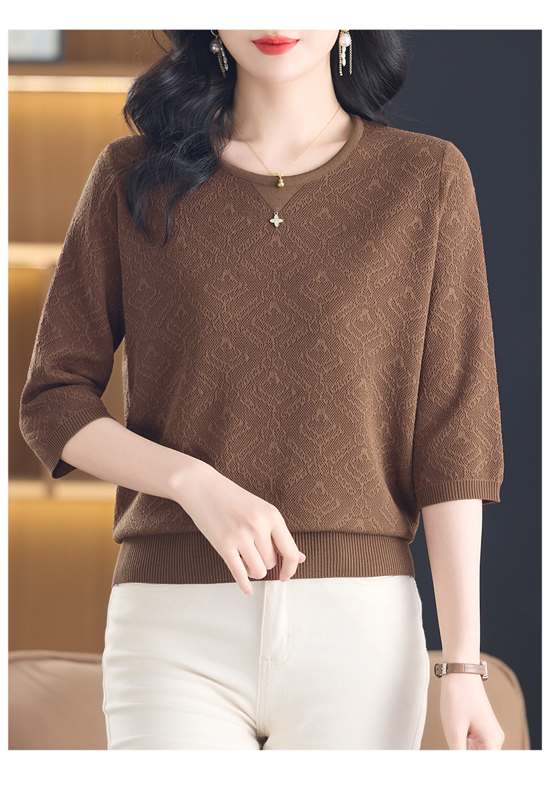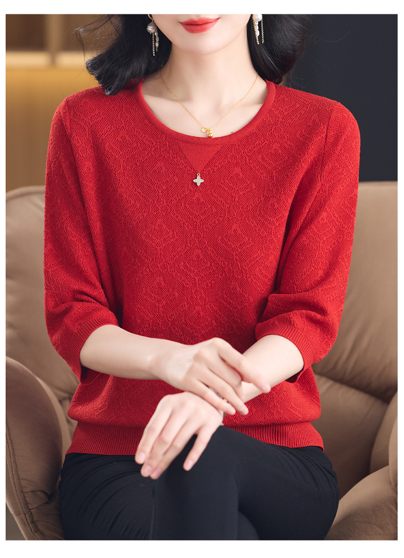 CC-13-2823洋气圆领半袖针织衫女士2025春秋新款遮肚子七分中袖上衣