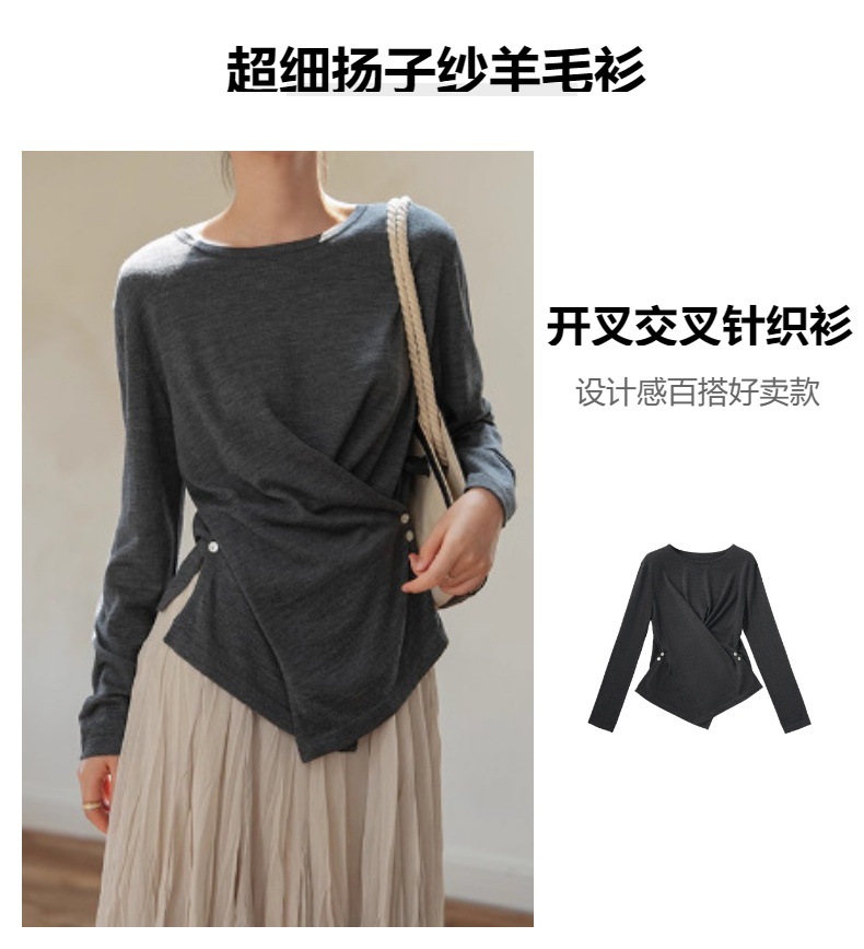 「自」全新升级【铂金会员293/天猫399/差价106】(03313)洛诗琳扬子纱羊毛针织衫2025秋冬设计感系扣不规则收腰上衣
