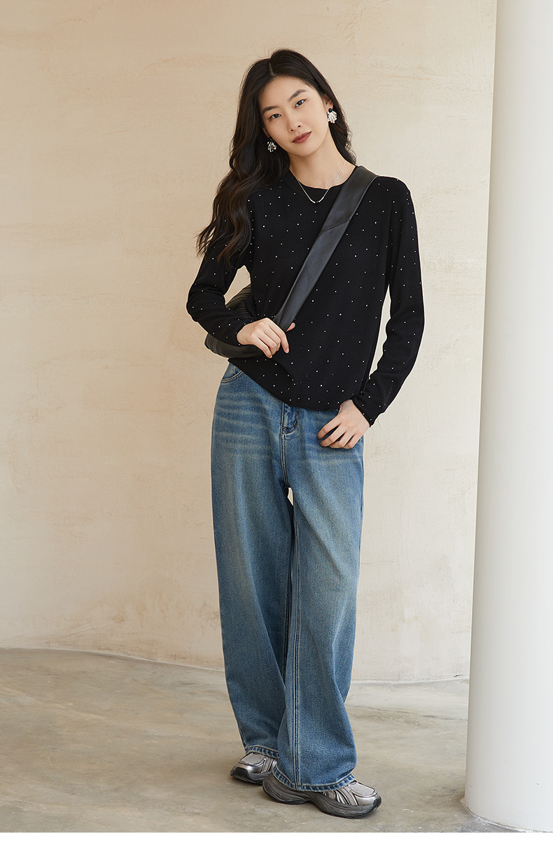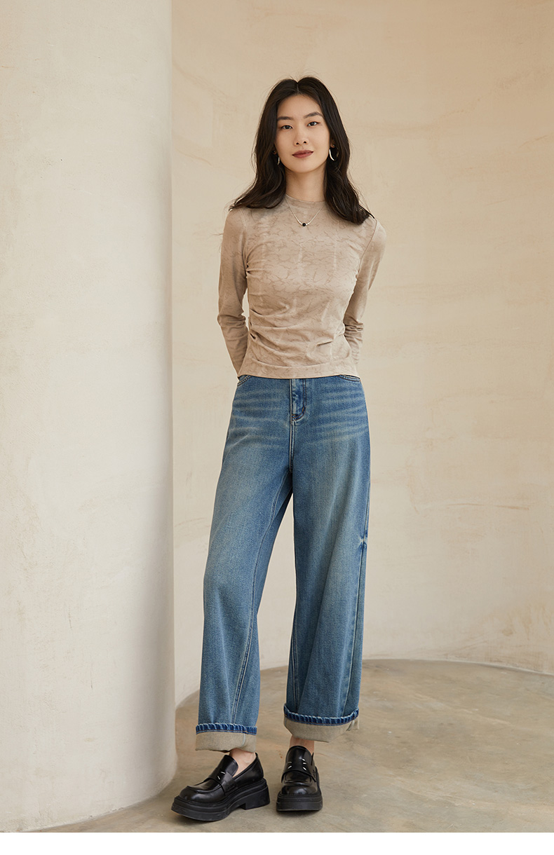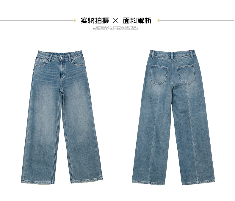 复古浅蓝高腰阔腿牛仔裤 宽松显瘦显高直筒裤 春秋季百搭垂感休闲牛仔长裤